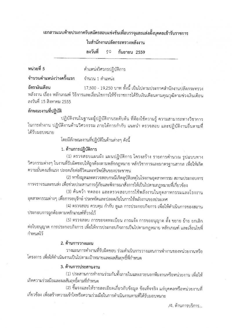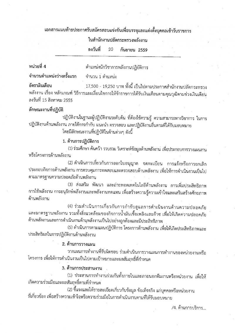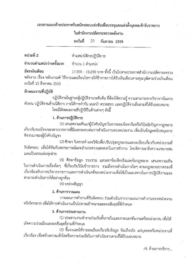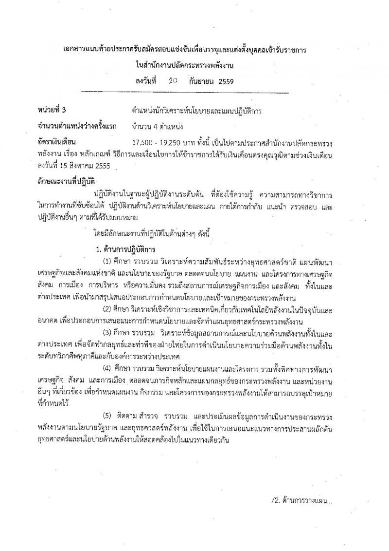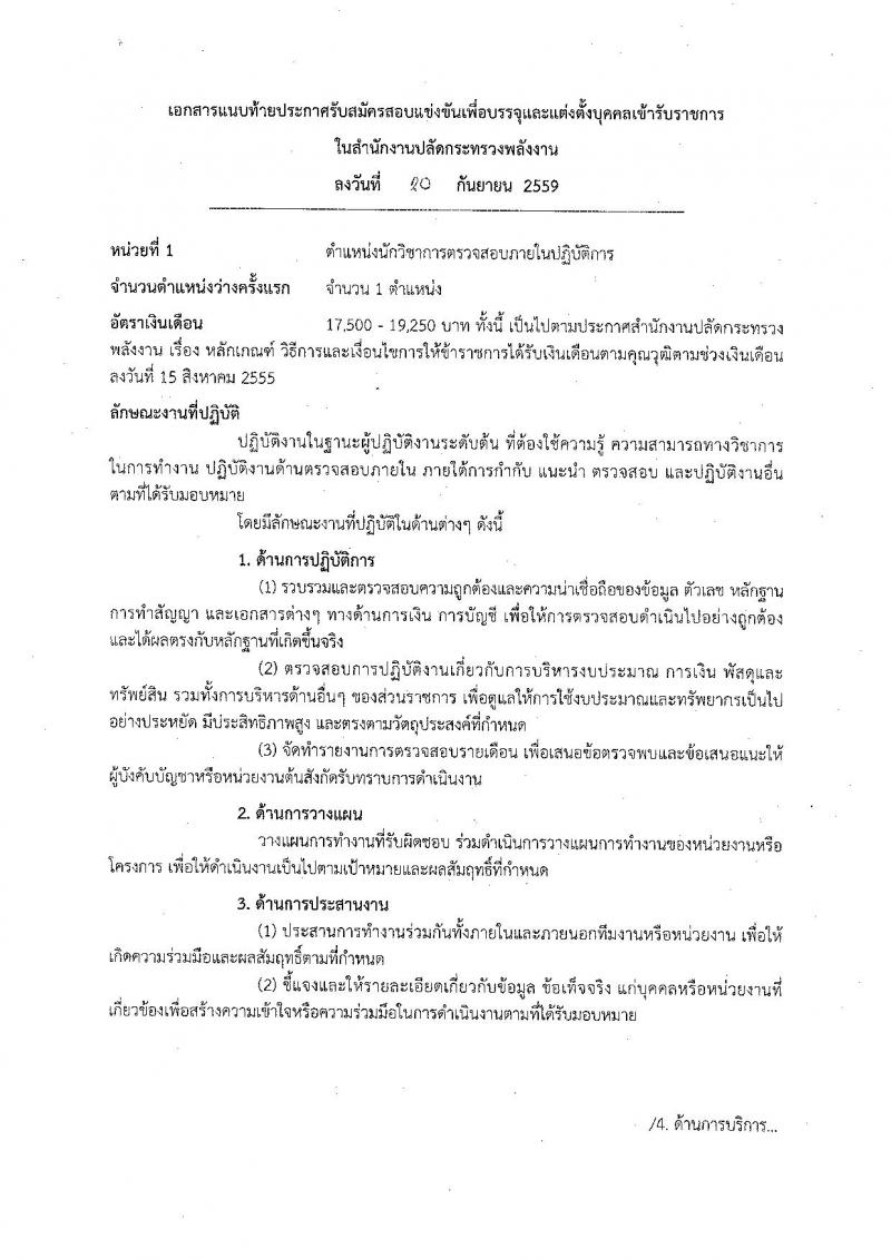 สำนักงานปลัดกระทรวงพลัง ประกาศรับสมัครสอบแข่งขันเพื่อบรรจุเข้ารับราชการ จำนวน 6 ตำแหน่ง 9 อัตรา (วุฒิ ปวส. ป.โท) รับสมัครสอบทางอินเทอร์เน็ต ตั้งแต่วันที่ 29 ก.ย. - 19 ต.ค. 2559