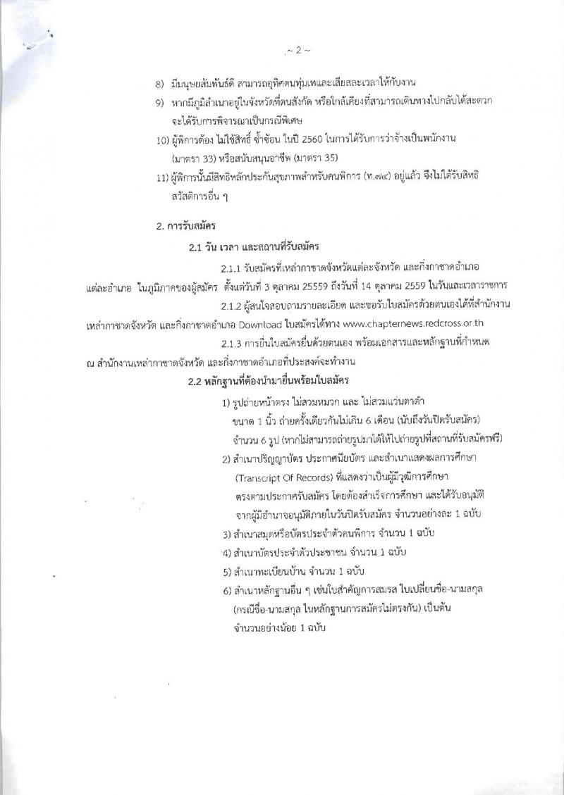 สภากาชาดไทย ประกาศรับสมัครคนพิการเข้าปฏิบัติงานในเหล่ากาชาดจังหวัด และกิ่งกาชาดอำเภอ จำนวน 632 อัตรา (วุฒิ ป.6 ม.3 ม.6 ปวช. ปวส. ป.ตรีทุกสาขา ) รับสมัครสอบตั้งแต่วันที่ 3-14 ต.ค. 2559