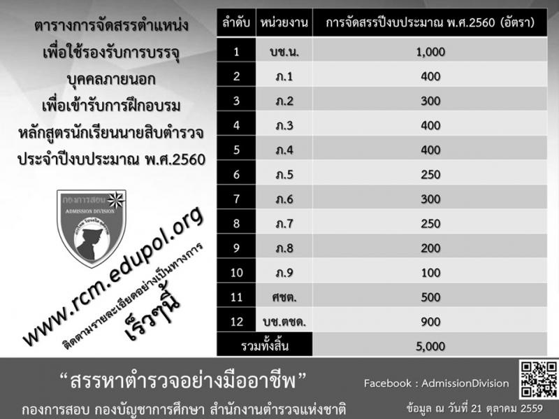 สำนักงานตำรวจแห่งชาติ ประกาศรับสมัครบุคคลสอบเข้าเป็นนักเรียนนายสิบตำรวจ จำนวน 5,000 อัตรา (วุฒิ ม.ปลาย/ปวช.) ประจำปีงบประมาณ 2560 ตั้งแต่วันที่ 9-23 พ.ย. 2559