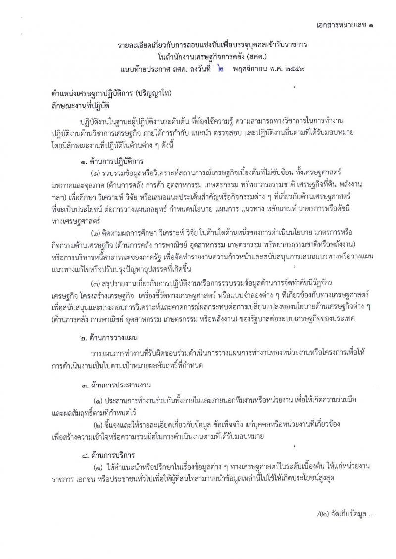 สำนักงานเศรษฐกิจการคลัง ประกาศรับสมัครสอบแข่งขันเพื่อบรรจุและแต่งตั้งบุคคลเข้ารับราชการในตำแหน่งเศรษฐกรปฏิบัติการ (ป.โท) ครั้งแรกจำนวน 11 อัตรา รับสมัครสอบทางอินเทอร์เน็ต ตั้งแต่วันที่ 10-30 พ.ย. 2559