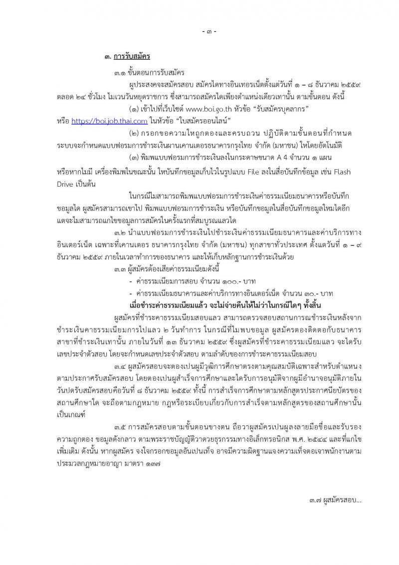 สำนักงานคณะกรรมการส่งเสริมการลงทุน ประกาศรับสมัครบุคคลเพื่อเลือกสรรเป็นพนักงานราชการทั่วไปในตำแหน่งพนักงานสนับสนุนการลงทุน จำนวน 2 อัตรา (วุฒิ ปวส.) รับสมัครสอบทางอินเทอร์เน็ต ตั้งแต่วันที่ 1-8 ธ.ค. 2559