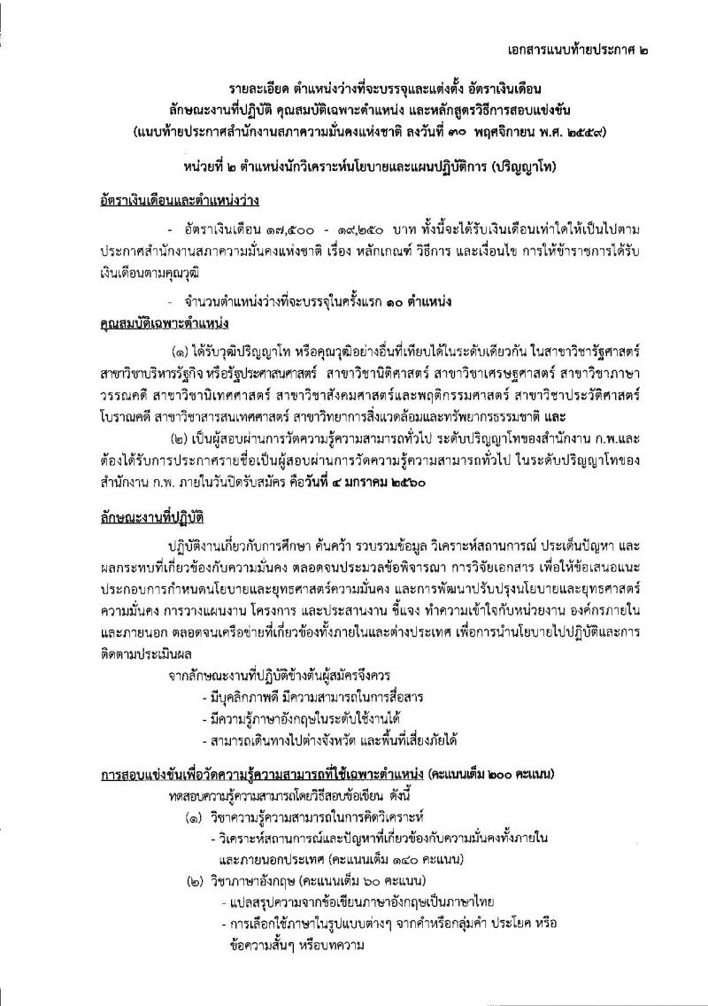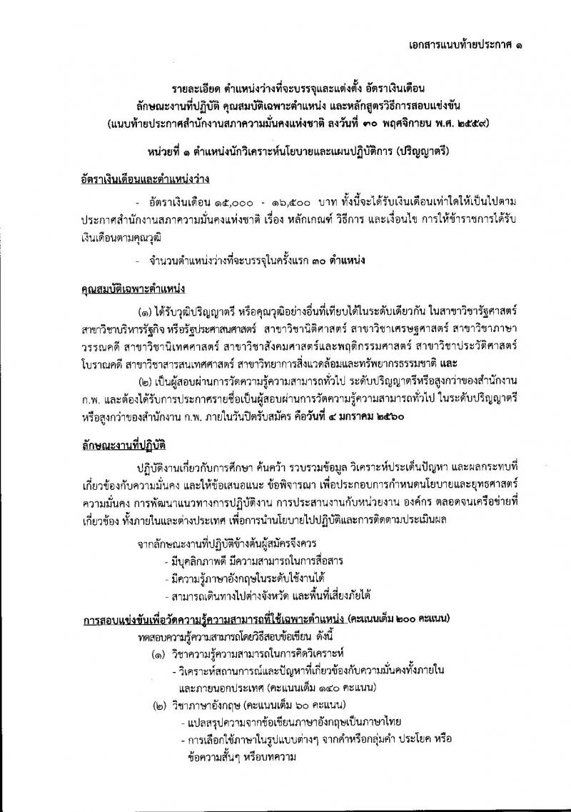 สำนักงานสภาความมั่นคงแห่งชาติ ประกาศรับสมัครสอบแข่งขันเพื่อบรรจุและแต่งตั้งบุคคลเข้ารับราชการในตำแหน่งนักวิเคราะห์นโยบายและแผนปฏิบัติการ (วุฒิ ป.ตรี ป.โท) ครั้งแรก 40 อัตรา รับสมัครสอบทางอินเทอร์เน็ต ตั้งแต่วันที่ 13 ธ.ค. - 4 ม.ค. 2559