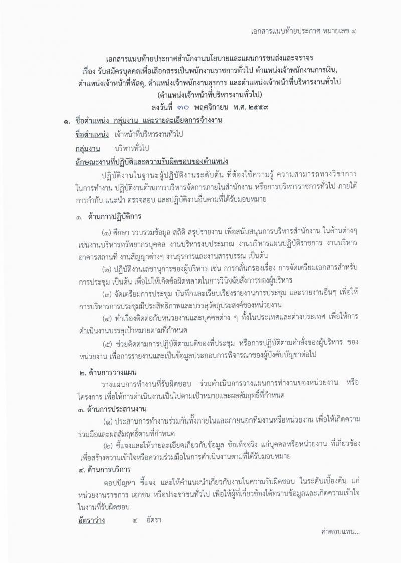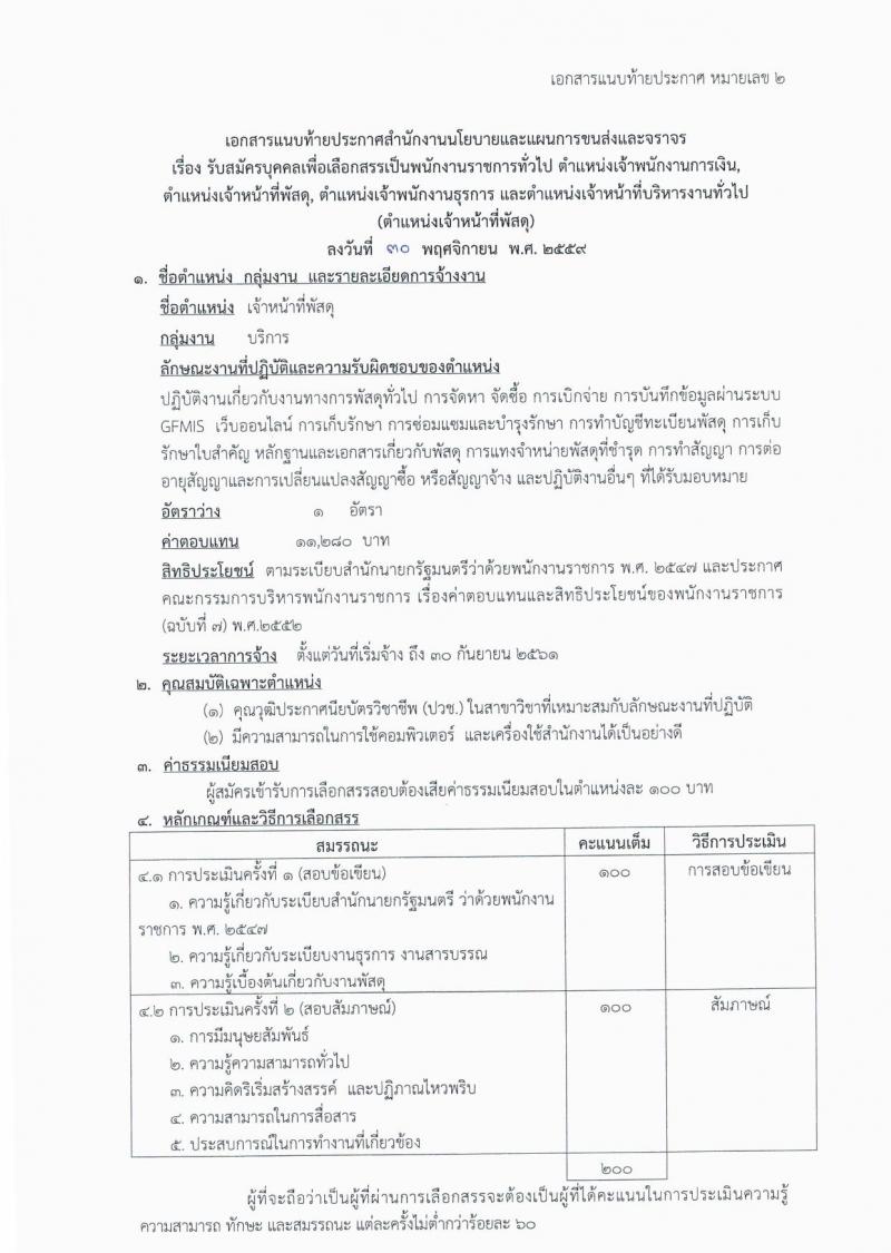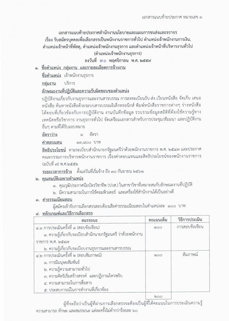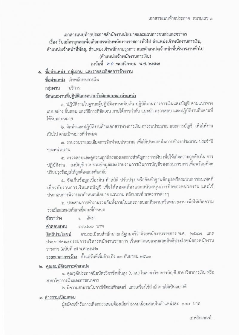 สำนักงานนโยบายและแผนการขนส่งและจราจร ประกาศรับสมัครบุคคลเพื่อเลือกสรรเป็นพนักงานราชการทั่วไป จำนวน 4 ตำแหน่ง 7 อัตรา (วุฒิ ปวช. ปวส. ป.ตรี) รับสมัครสอบทางอินเทอร์เน็ต ตั้งแต่วันที่ 14-27 ธ.ค. 2559