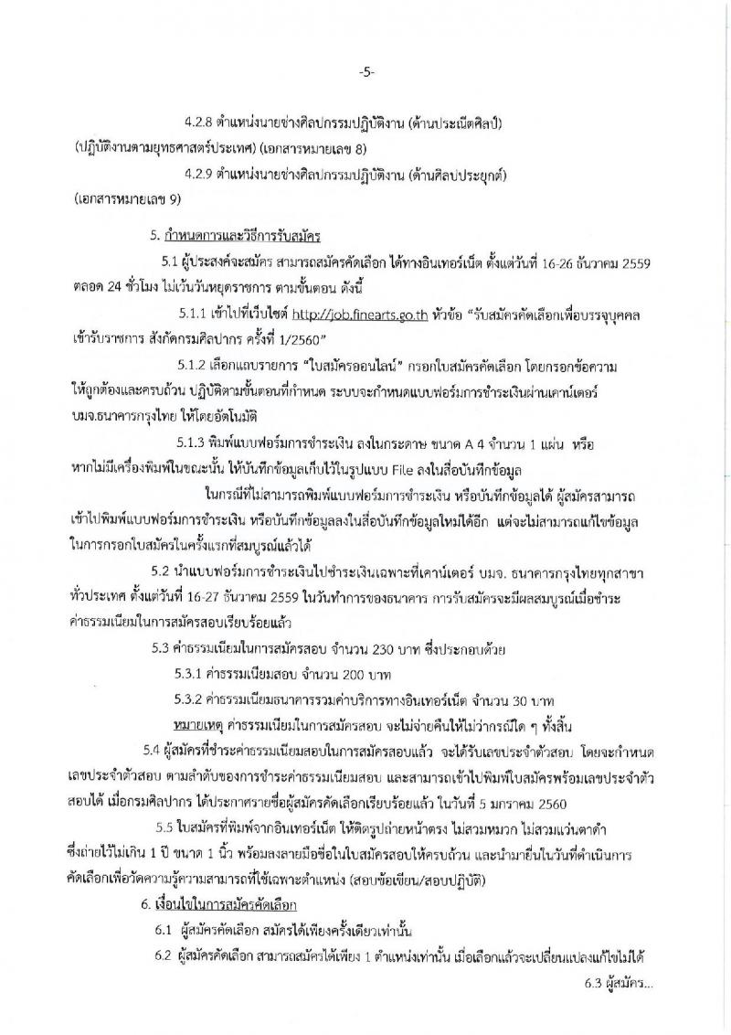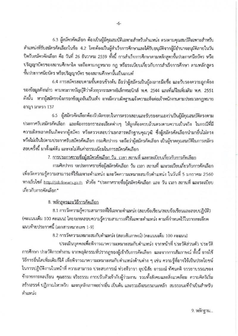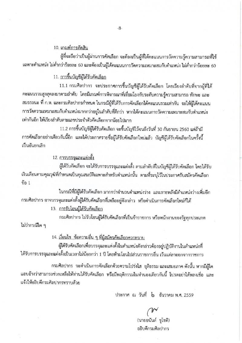 กรมศิลปากร ประกาศรับสมัครคัดเลือกเพื่อบรรจุบุคคลเข้ารับราชการ สังกัดกรมศิลปากร ครั้งที่ 1/2560 จำนวน 9 ตำแหน่ง 11 อัตรา (วุฒิ ป.ตรี) รับสมัครสอบทางอินเทอร์เน็ต ตั้งแต่วันที่ 16-26 ธ.ค. 2559