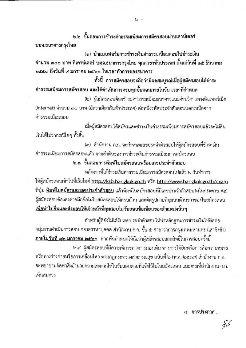สำนักงานคณะกรรมการข้าราชการกรุงเทพมหานคร ประกาศรับสมัครสอบแข่งขันเพื่อบรรจุและแต่งตั้งบุคคลเข้ารับราชการ ครั้งที่ 3/2559 จำนวน 5 ตำแหน่ง 304 อัตรา (วุฒิ ปวช. ปวท. ปวส. ป.ตรี) รับสมัครสอบทางอินเทอร์เน็ต ตั้งแต่วันที่ 15 ธ.ค. 59 - 6 ม.ค. 60