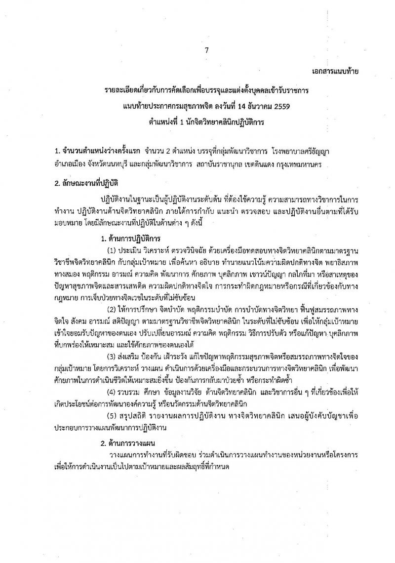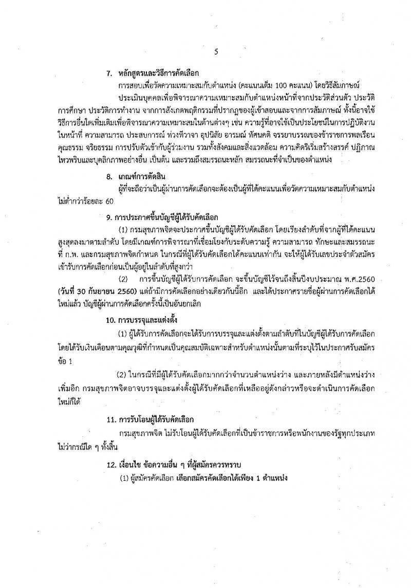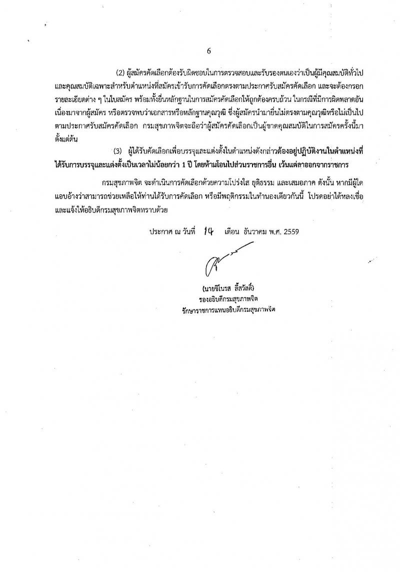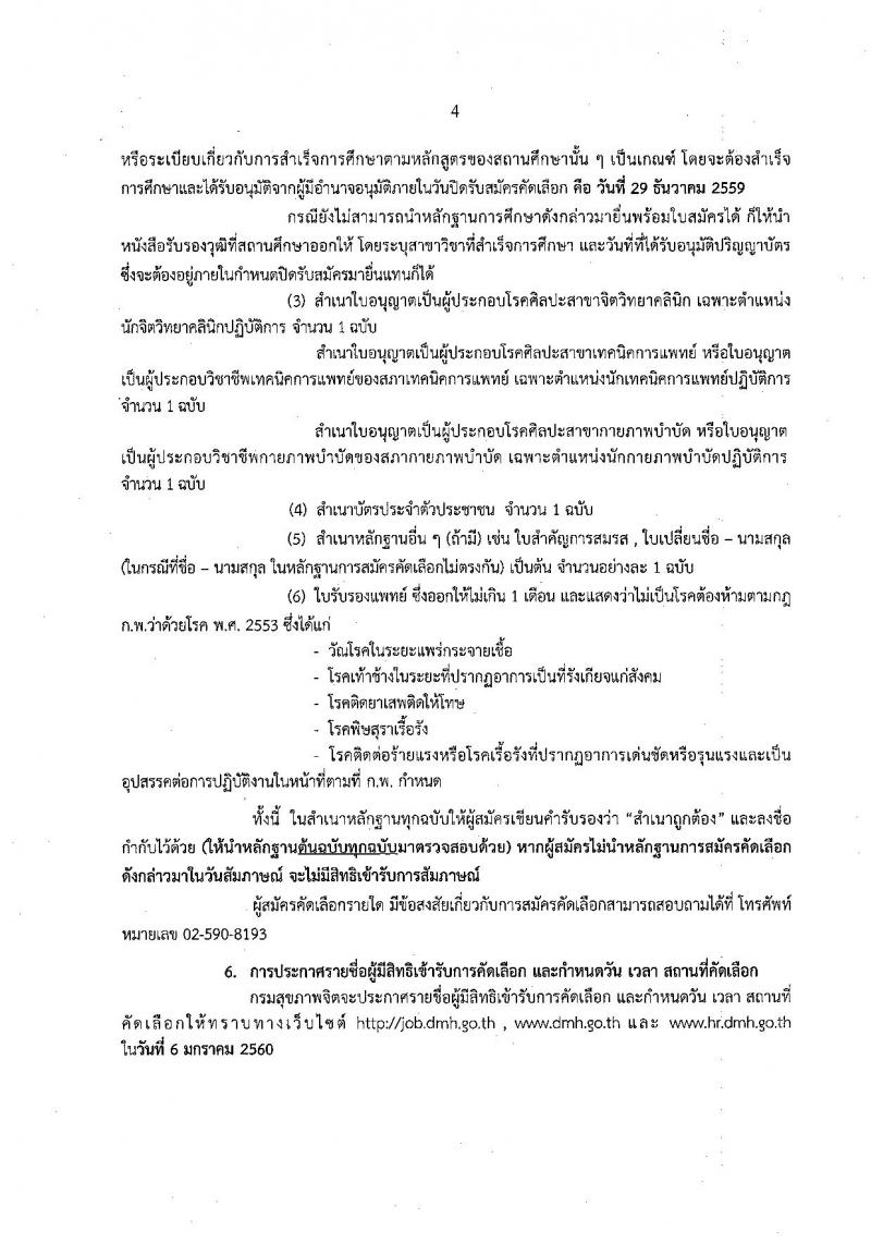 กรมสุขภาพจิต ประกาศรับสมัครคัดเลือกเพื่อบรรจุและแต่งตั้งบุคคลเข้ารับราชการ จำนวน 4 ตำแหน่ง 6 อัตรา (วุฒิ ป.ตรี) รับสมัครสอบทางอินเทอร์เน็ต ตั้งแต่วันที่ 23-29 ธ.ค. 2559