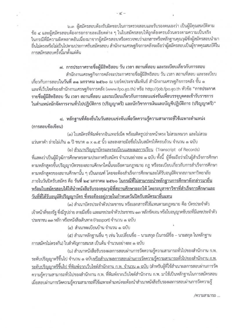 สำนักงานเศรษฐกิจการคลัง ประกาศรับสมัครสอบแข่งขันเพื่อบรรจุและแต่งตั้งบุคคลเข้ารับราชการ จำนวน 2 ตำแหน่ง 4 อัตรา (วุฒิ ป.ตรี) รับสมัครสอบทางอินเทอร์เน็ต ตั้งแต่วันที่ 4-24 ม.ค. 2560