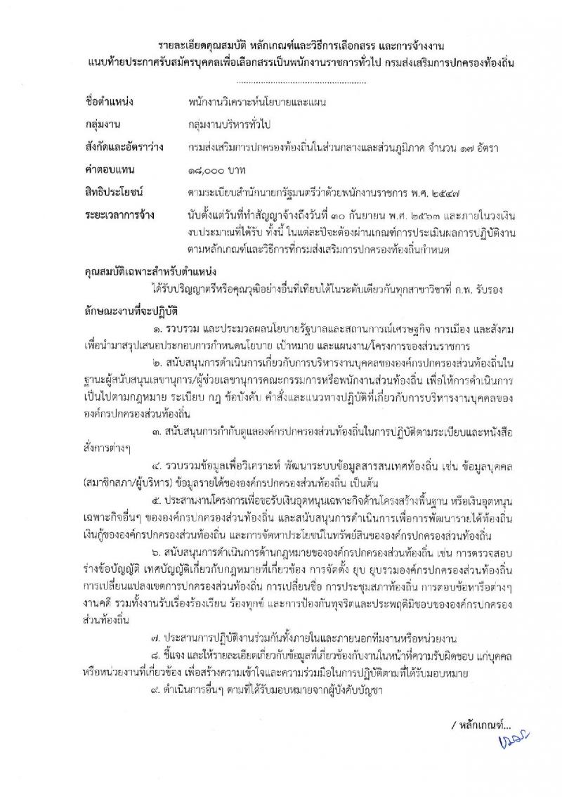 กรมส่งเสริมการปกครองท้องถิ่น ประกาศรับสมัครบุคคลเพื่อเลือกสรรเป็นพนักงานราชการทั่วไป จำนวน 2 ตำแหน่ง 19 อัตรา (วุฒิ ป.ตรี ป.โท) รับสมัคสอบทางอินเทอร์เน็ต ตั้งแต่วันที่ 16-24 ม.ค. 2560