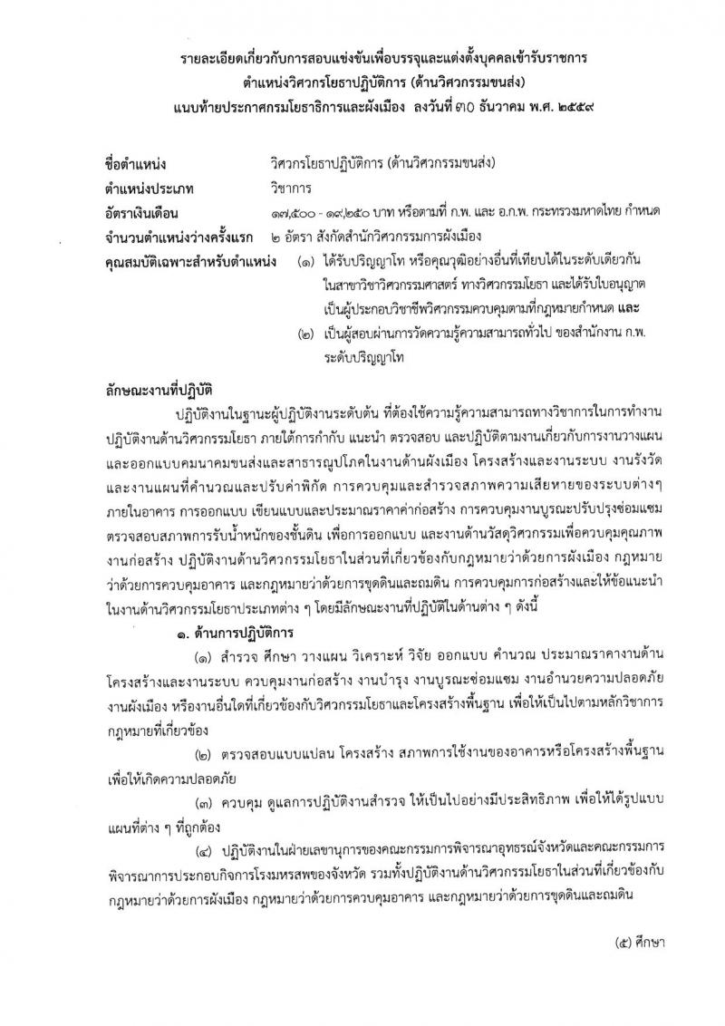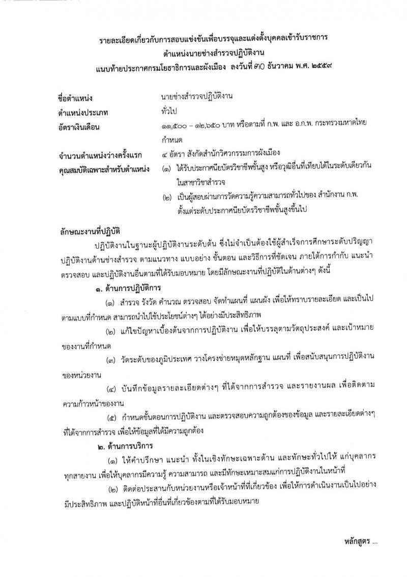 กรมโยธาธิการและผังเมือง ประกาศรับสมัครสอบแข่งขันเพื่อบรรจุและแต่งตั้งบุคคลเข้ารับราชการในตำแหน่งวิศวกรโยธาปฏิบัติการ และนางช่างสำรวจปฏิบัติงาน จำนวน 6 อัตรา (วุฒิ ปวส. ป.โท) รับสมัครสอบทางอินเทอร์เน็ต ตั้งแต่วันที่ 11-31 ม.ค. 2560