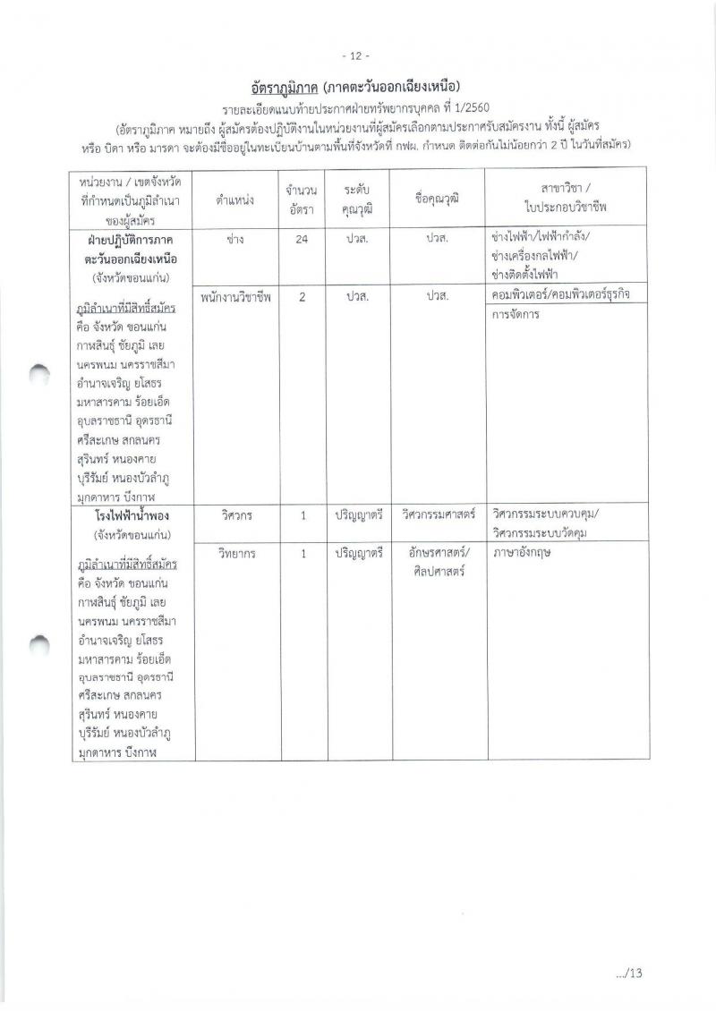 การไฟฟ้าฝ่ายผลิต (กฟผ.) ประกาศรับสมัครบุคคลทั่วไปเพื่อจ้างและบรรจุเป็นพนักงาน จำนวน 610 อัตรา (วุฒิ ปวช. ปวส. ป.ตรี ป.โท ป.เอก) รับสมัครสอบทางอินเทอร์เน็ต ตั้งแต่วันที่ 16-31 ม.ค. 2560