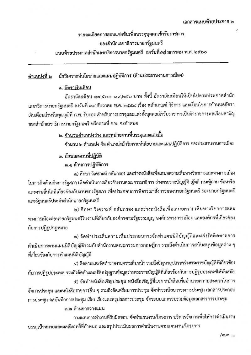 สำนักเลขาธิการนายกรัฐมนตรี ประกาศรับสมัครสอบแข่งขันเพื่อบรรจุบุคคลเข้ารับราชการในตำแหน่งนักวิเคราะห์นโยบายและแผนปฏิบัติการ ครั้งแรก จำนวน 3 อัตรา (วุฒิ ป.ตรี ป.โท) รับสมัครสอบทางอินเทอร์เน็ตตั้งแต่วันที่ 27 ม.ค. – 17 ก.พ.2560