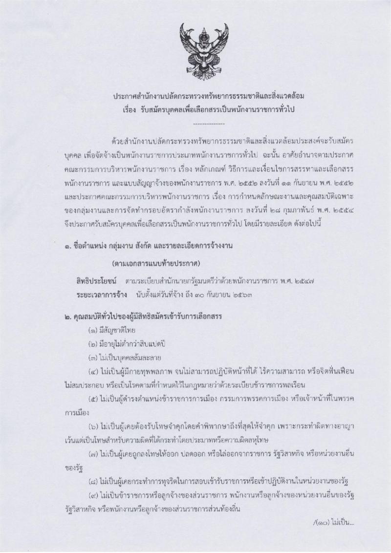 สำนักงานปลัดกระทรวงทรัพยากรธรรมชาติและสิ่งแวดล้อม รับสมัครสอบเป็น พนักงานราชการ 4 อัตรา