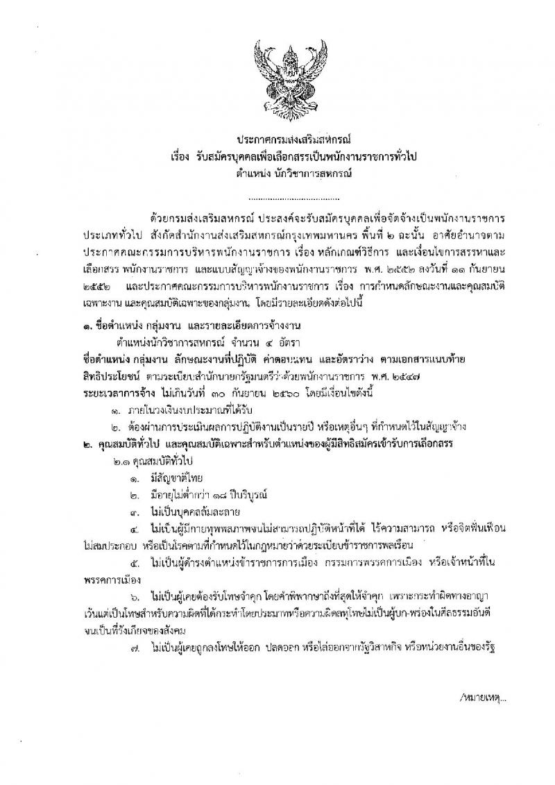 กรมส่งเสริมสหกรณ์ รับสมัครสอบเป็น พนักงานราชการ 4 อัตรา