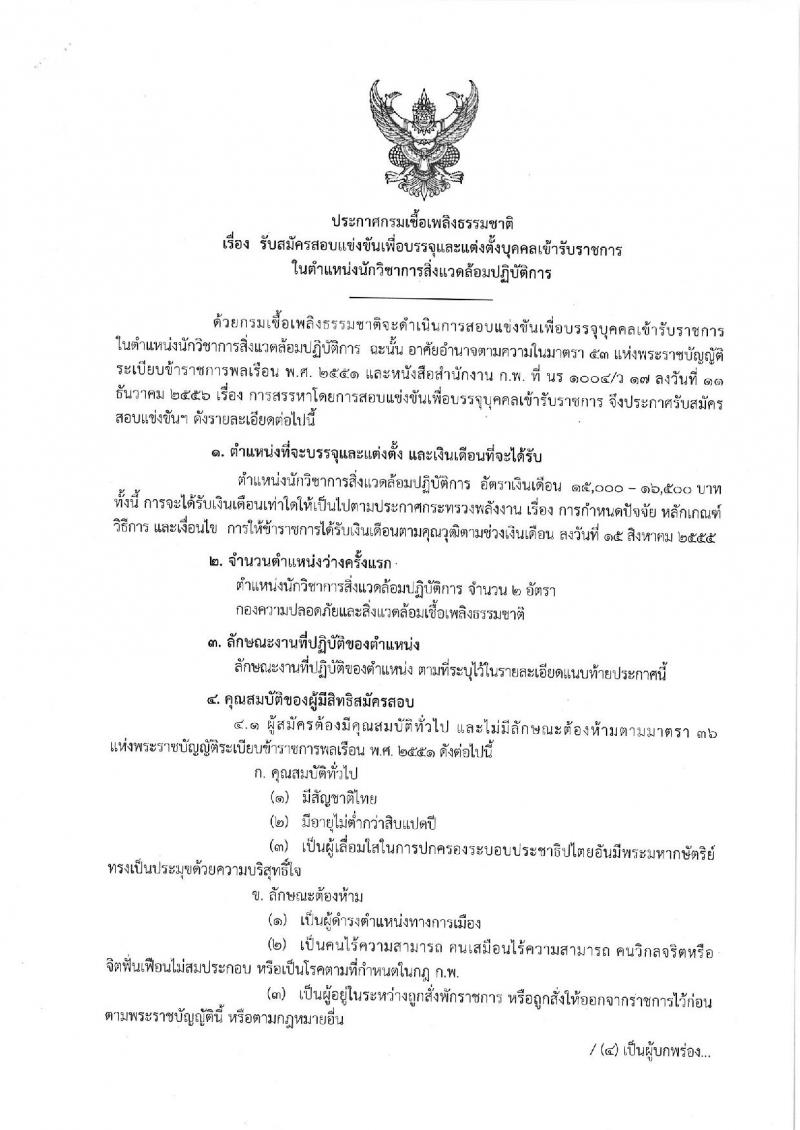กรมเชื้อเพลิงธรรมชาติ ประกาศรับสมัครสอบแข่งขันเพื่อบรรจุและแต่งตั้งบุคคลเข้ารับราชการในตำแหน่งนักวิชาการสิ่งแวดล้อมปฏิบัติการ จำนวนครั้งแรก 2 อัตรา (วุฒิ ป.ตรี) รับสมัครสอบ ตั้งแต่วันที่ 14 ธ.ค. 60 – 5 ม.ค. 2560