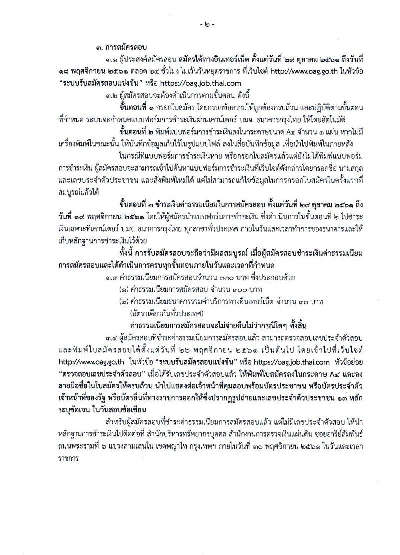 สำนักงานการตรวจเงินแผ่นดิน รับสมัครสอบแข่งขันเพื่อบรรจุและแต่งตั้งลูกจ้างสำนักงานตรวจสอบเงินแผ่นดินเข้ารับราชการ จำนวน 60 อัตรา (วุฒิ ป.ตรี) รับสมัครทางอินเทอร์เน็ต ตั้งแต่วันที่ 29 ต.ค. – 18 พ.ย. 2561