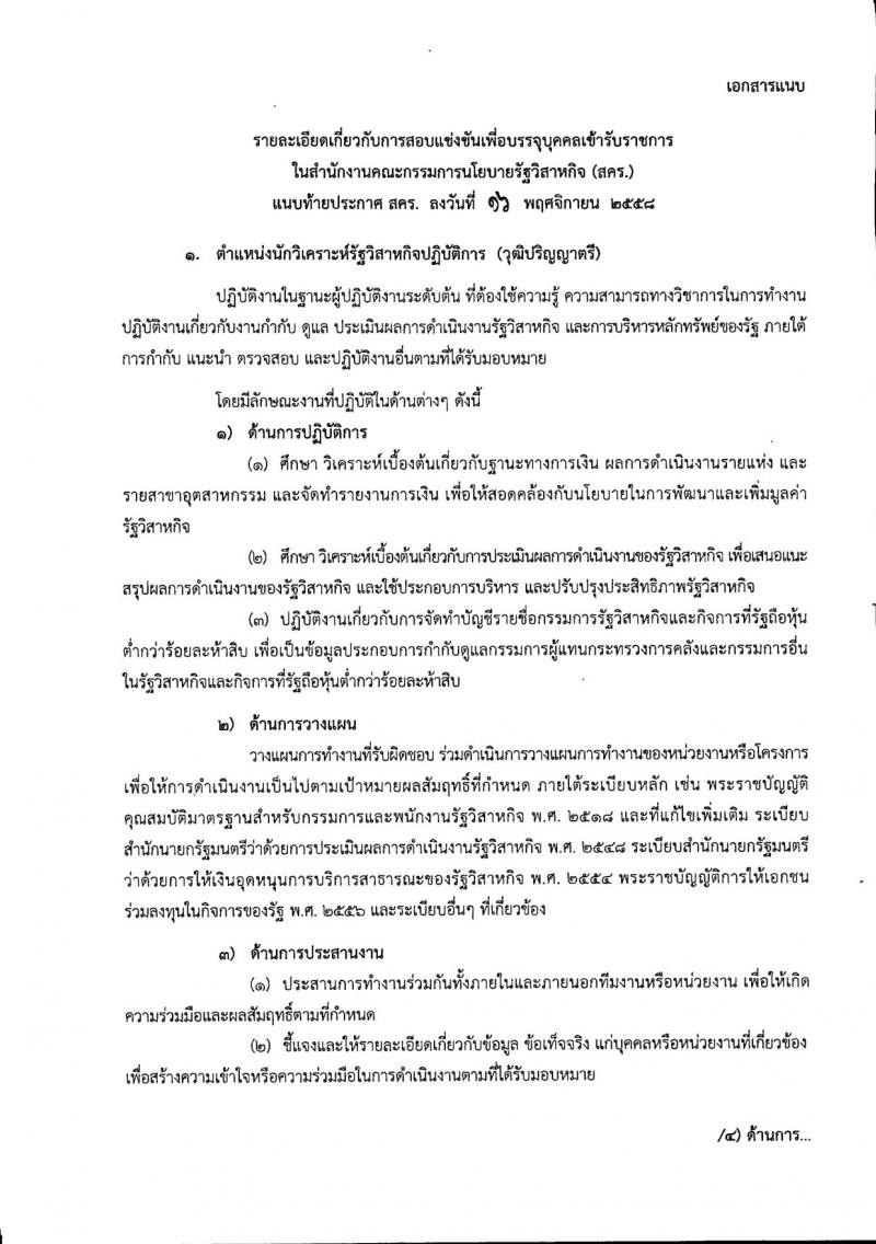 สำนักงานคณะกรรมการนโยบายรัฐวิสาหกิจ ประกาศรับสมัครสอบแข่งขันเพื่อบรรจุและแต่งตั้งบุคคลเข้ารับราชการ จำนวน 2 ตำแหน่ง ครั้งแรก 5 อัตรา สมัครสอบตั้งแต่วันที่ 24 พ.ย. - 17 ธ.ค. 2558