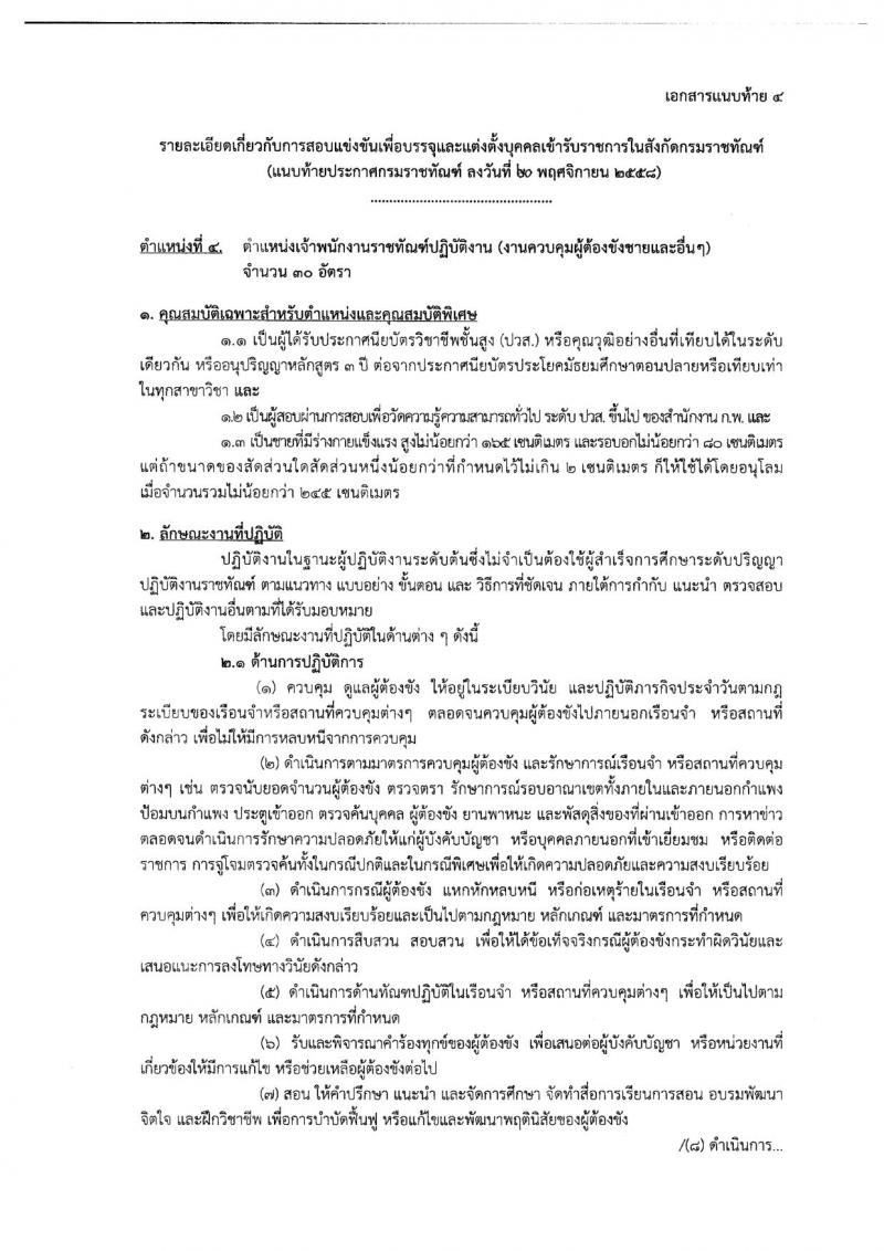 กรมราชทัณฑ์ ประกาศรับสมัครสอบแข่งขันเพื่อบรรจุและแต่งตั้งบุคคลเข้ารับราชการในสังกัดกรมราชทัณฑ์ จำนวน 4 ตำแหน่ง 62 อัตรา (วุฒิ ปวส. ป.ตรี) รับสมัครสอบทางอินเทอร์เน็ต ตั้งแต่วันที่ 30 พ.ย. - 22 ธ.ค. 2558
