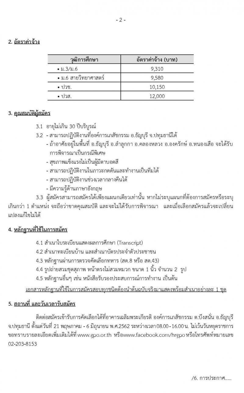 องค์การเภสัชกรรม รับสมัครบุคคลเพื่อคัดเลือกและจ้างเป็นลูกจ้างชั่วคราว จำนวนครั้งแรก 36 คน (วุฒิ ม.ต้น ม.ปลาย ปวช. ปวส.) รับสมัครสอบตั้งแต่วันที่ 21 พ.ค. – 6 มิ.ย. 2562