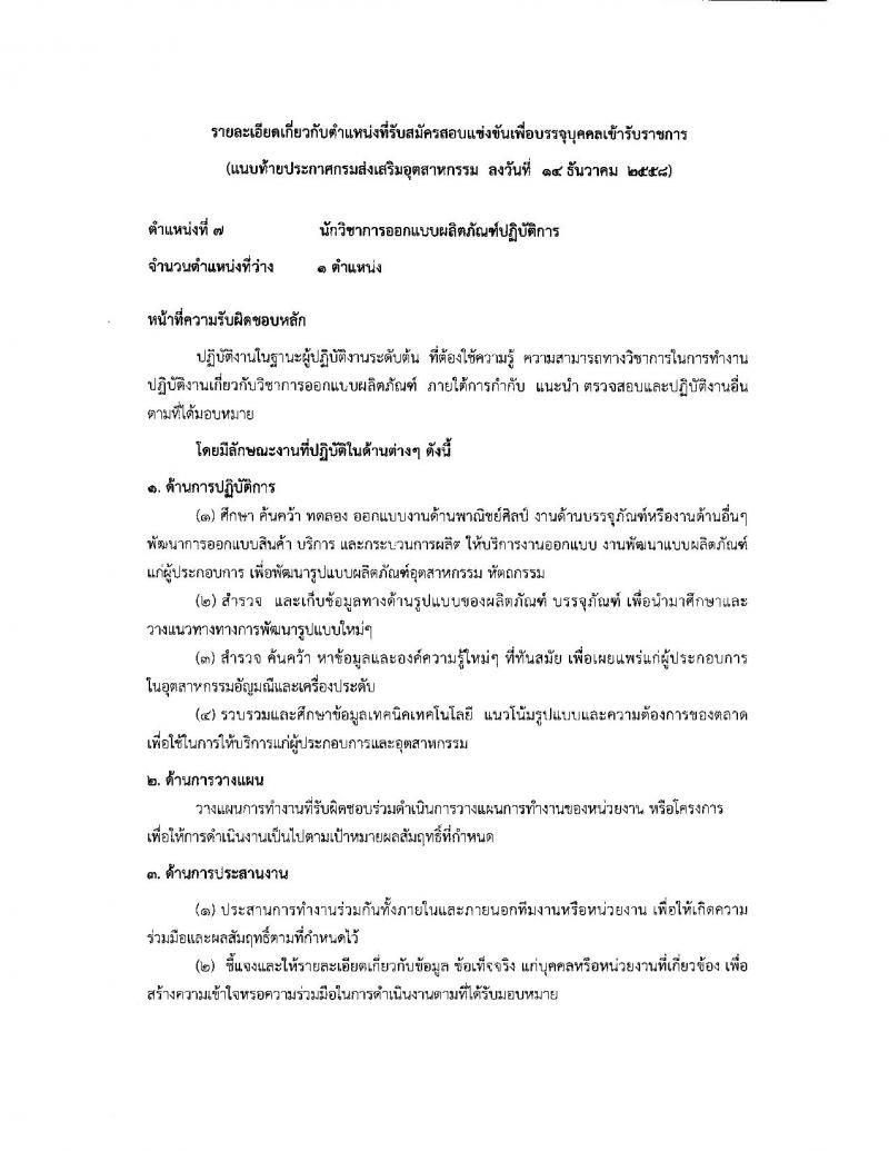 กรมส่งเสริมอุตสาหกรรม ประกาศรับสมัครสอบแข่งขันเพื่อบรรจุและแต่งตั้งบุคคลเข้ารับราชการ จำนวน 7 ตำแหน่ง 14 อัตรา (วุฒิ ป.ตรี ป.โท) รับสมัครสอบตั้งแต่วันที่ 23 ธ.ค. 58 - 15 ม.ค. 59