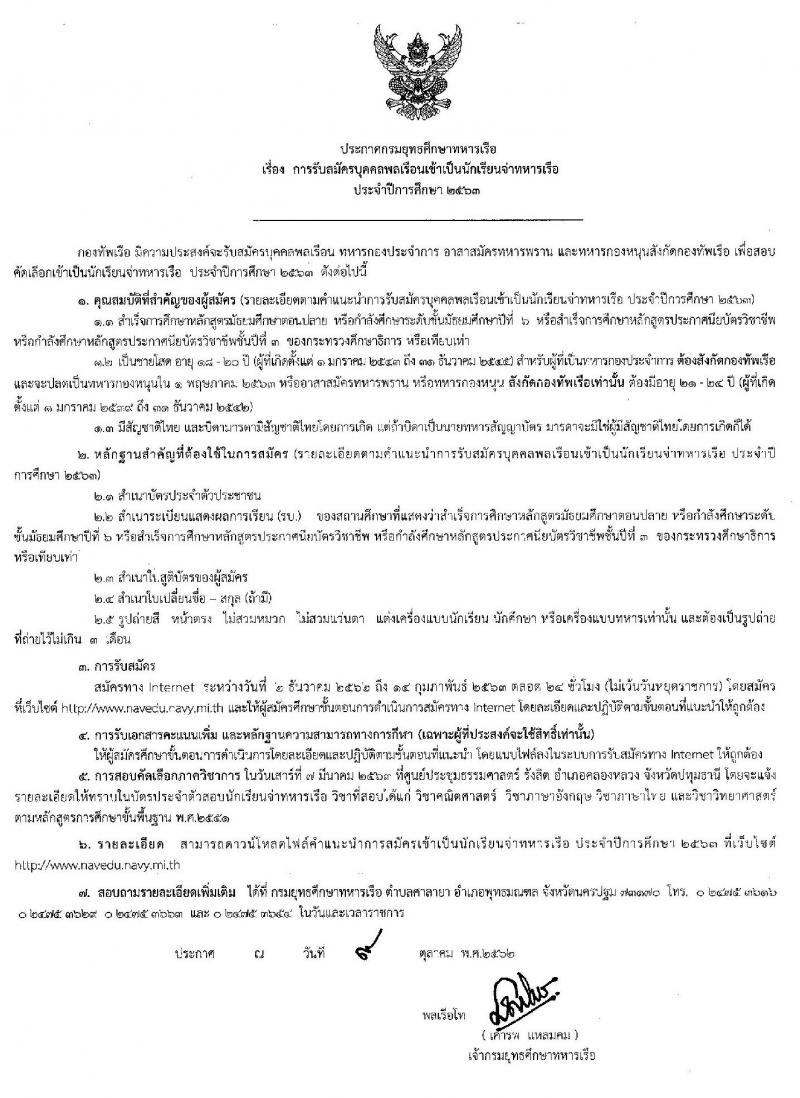 กรมยุทธศึกษาทหารเรือ รับสมัครบุคคลเข้าเป็น นักเรียนจ่าทหารเรือ จำนวน 1,000 กว่าอัตรา (วุฒิ ม.ปลาย ปวช. หรือเทียบเท่า) รับสมัครสอบทางอินเทอร์เน็ต ตั้งแต่วันที่ 2 ธ.ค. 62 – 14 ก.พ. 63