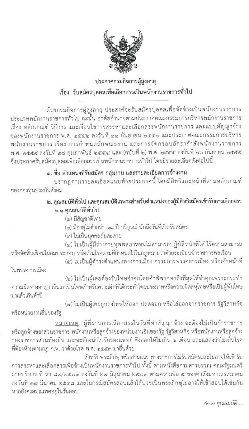 กรมกิจการผู้สูงอายุ รับสมัครสอบเป็น พนักงานราชการ 16 อัตรา