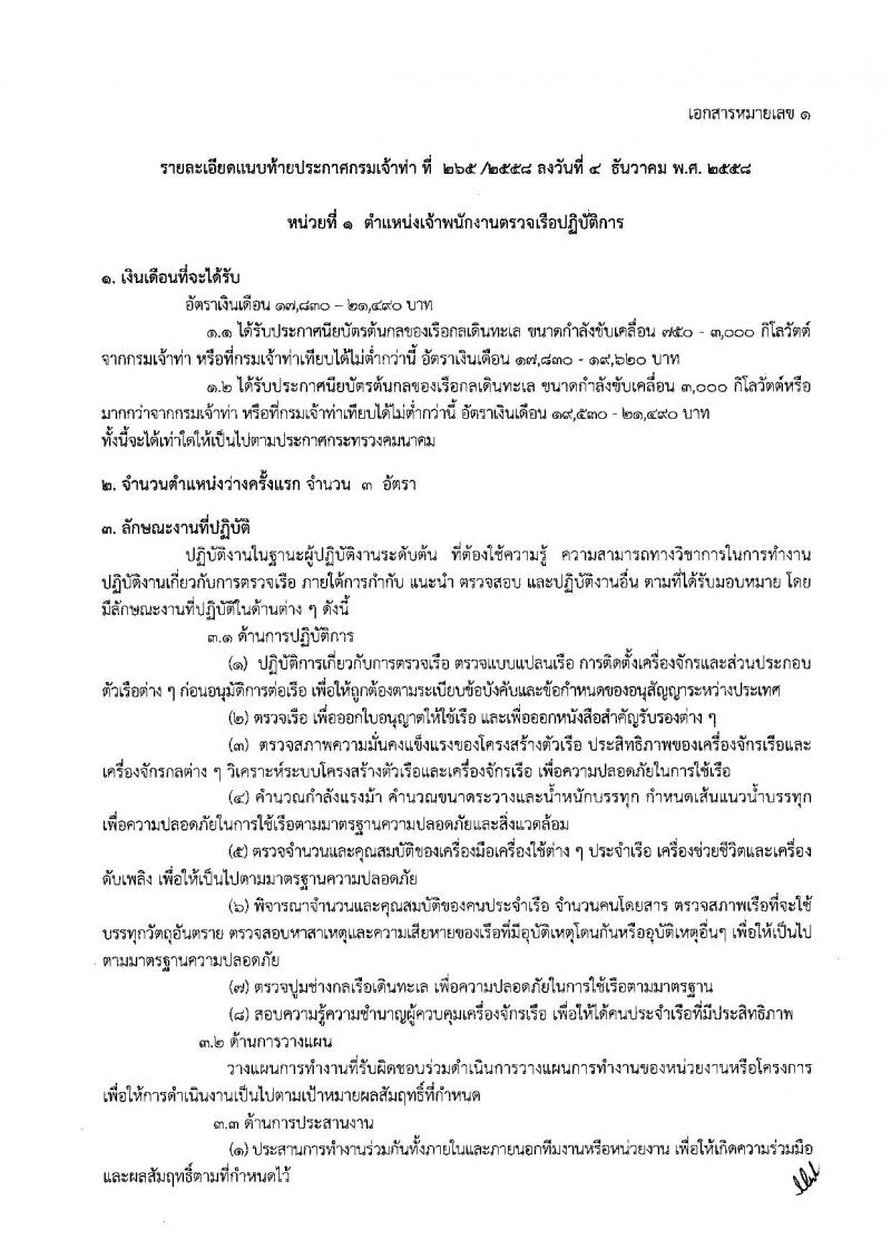 กรมเจ้าท่า ประกาศรับสมัครคัดเลือกเพื่อบรรจุแต่งตั้งบุคคลเข้ารับราชการในตำแหน่งเจ้าพนักงานตรวจเรือปฏิบัติการและตำแหน่งนายช่างกลเรือปฏิบัติการ ครั้งแรกจำนวน 9 อัตรา รับสมัครสอบตั้งแต่วันที่ 15 ธ.ค. 58 - 15 ม.ค. 59