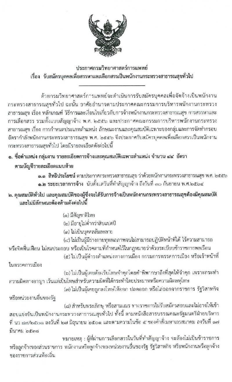 กรมวิทยาศาสตร์การแพทย์ รับสมัครสอบเป็น พนักงานกระทรวงสาธารณสุข 10 ตำแหน่ง 44 อัตรา