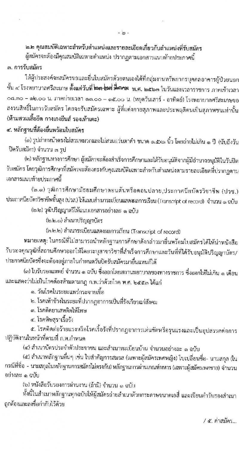 โรงพยาบาลศรีสะเกษ รับสมัครสอบเป็น ลูกจ้างชั่วคราว 2 ตำแหน่ง 3 อัตรา