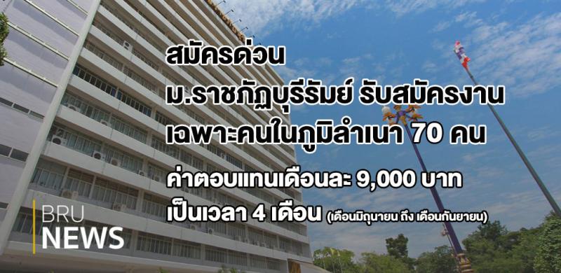 มหาวิทยาลัยราชภัฏบุรีรัมย์ดำเนินการจ้างเหมาบริการบุคคลเพื่อปฏิบัติงานตามโครงการจ้างงานประชาชนที่ได้รับผลกระทบจากสถานการณ์การระบาดของโรคติดเชื้อไวรัสโคโรน่า ๒๐๑๙ (COVID-๑๙) เปิดรับสมัครเพียงจำนวน ๗๐ รายเท่านั้น ระยะเวลาการจ้าง ๔ เดือน (เดือนมิถุนายน ถึง เดือนกันยายน)อัตราค่าจ้าง จำนวน ๙,๐๐๐ บาทต่อเดือน โดยกำหนดจ่ายเงินค่าจ้างเป็นงวด งวดละ ๙,๐๐๐ บาท โดยผู้รับจ้างต้องทำงานบริการในหน้าที่ให้เกิดผลสำเร็จของงานครบถ้วนสมบูรณ์ในเดือนนั้น ๆ และผ่านการตรวจรับการจ้างเรียบร้อยแล้วมหาวิทยาลัยจึงจะจ่ายค่าจ้างแต่ละงวด