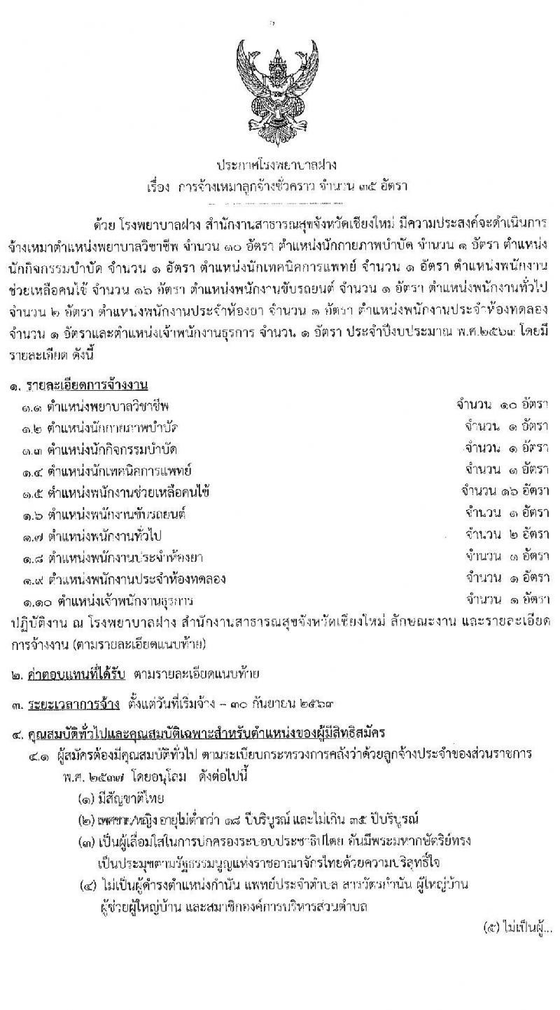 โรงพยาบาลฝาง รับสมัครสอบเป็น ลูกจ้างชั่วคราว 35 อัตรา