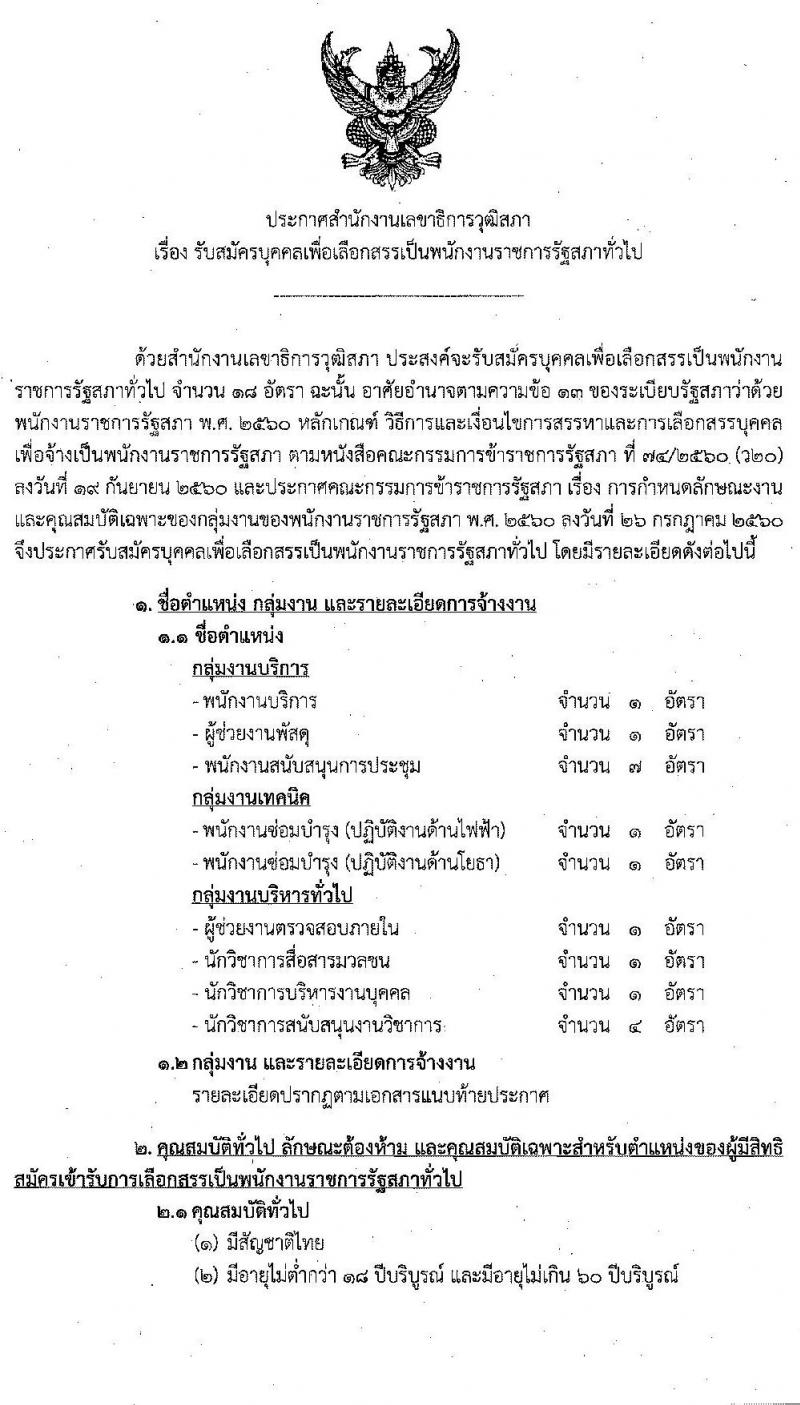 สำนักงานเลขาธิการวุฒิสภา รับสมัครเป็น พนักงานราชการ 18 อัตรา