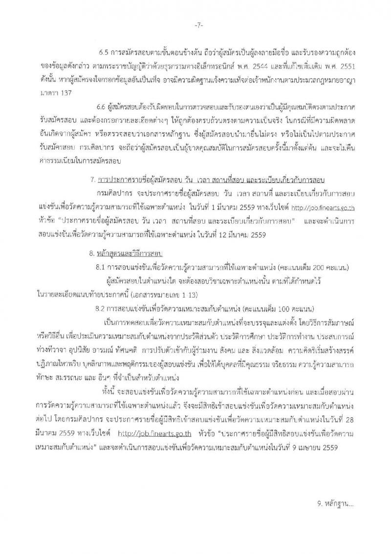 กรมศิลปากร ประกาศรับสมัครสอบแข่งขันเพื่อบรรจุและแต่งตั้งบุคคลเข้ารับราชการ สังกัดกรมศิลปากร ครั้งที่ 1/2559 จำนวน จำนวน 13 ตำแหน่ง 16 อัตรา (วุฒิ ปวส. ป.ตรี ป.โท) รับสมัครสอบทางอินเทอร์เน็ต ตั้งแต่วันที่ 1-22 ก.พ. 2559