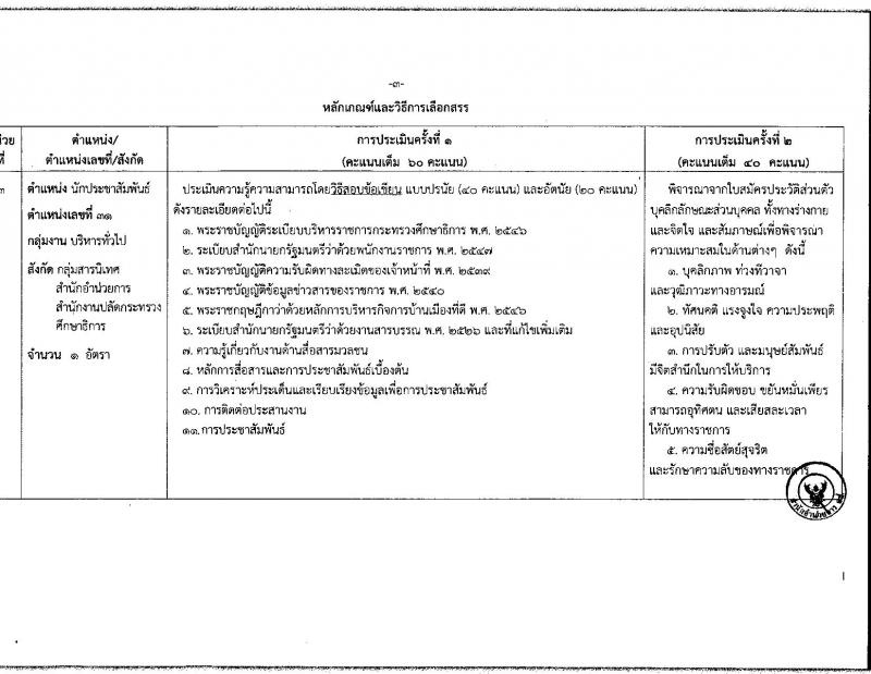 สำนักงานปลัดกระทรวงศึกษาธิการ รับสมัครสอบเป็น พนักงานราชการ 3 ตำแหน่ง 3 อัตรา