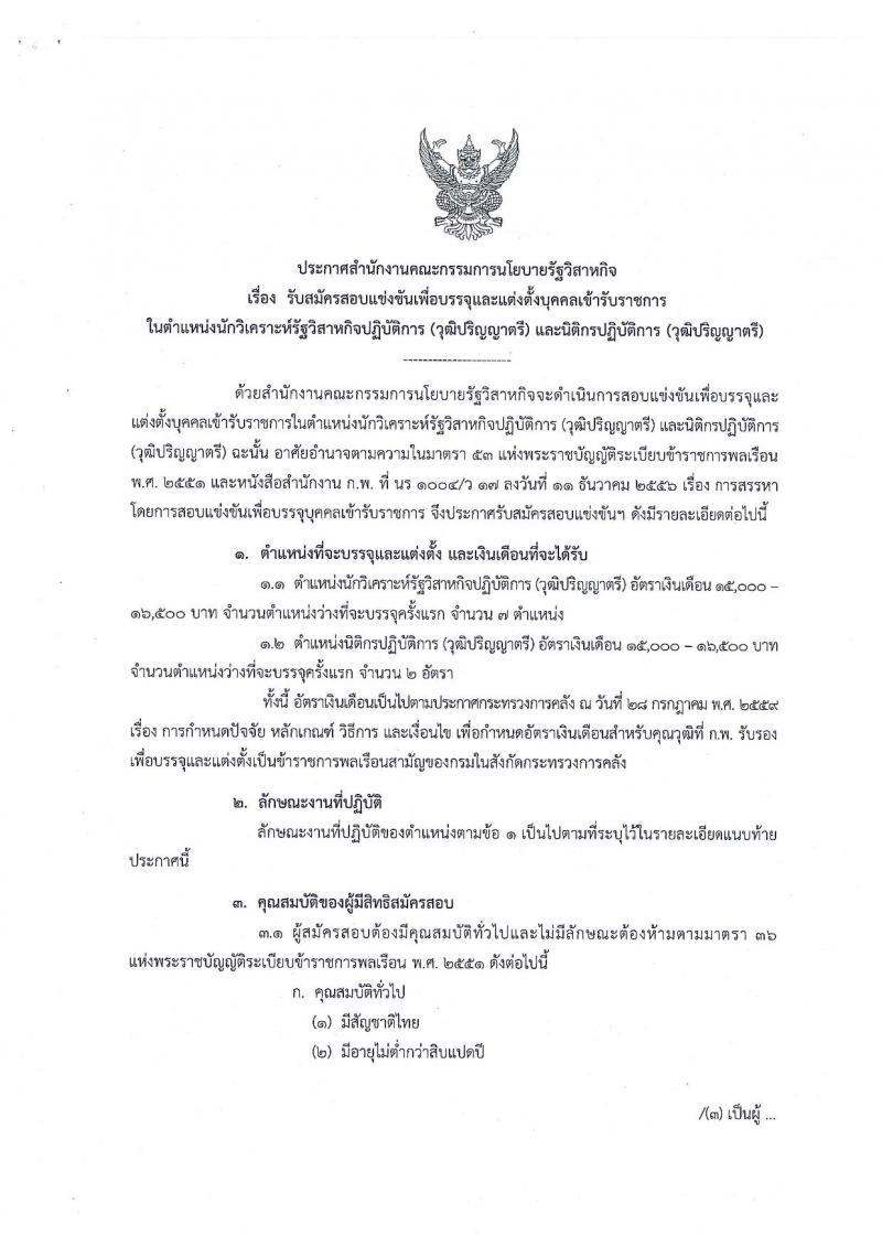 สำนักงานคณะกรรมการนโยบายรัฐวิสาหกิจ รับสมัครสอบเป็น ข้าราชการ 2 ตำแหน่ง ครั้งแรก 9 อัตรา