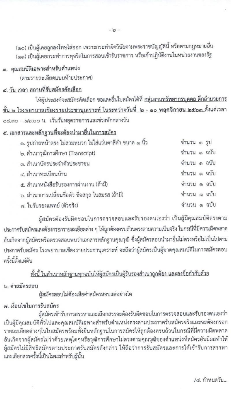 โรงพยาบาลเชียงรายประชานุเคราะห์ รับสมัครบุคคลเข้าปฏิบัติงานเป็นลูกจ้างชั่วคราว จำนวน 3 ตำแหน่ง 43 อัตรา (วุฒิ ม.ต้น ม.ปลาย ป.ตรี) รับสมัครสอบตั้งแต่วันที่ 2-10 พ.ย. 2563