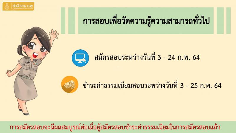 สำนักงาน ก.พ. รับสมัครสอบเพื่อวัดความรู้ความสามารถทั่วไป (ภาค ก ก.พ.) ประจำปี 2564 จำนวน 800,000 ที่นั่ง (วุฒิ ปวช. ปวส. ป.ตรี ป.โท) รับสมัครสอบทางอินเทอร์เน็ต ตั้งแต่วันที่ 3-24 ก.พ. 2564