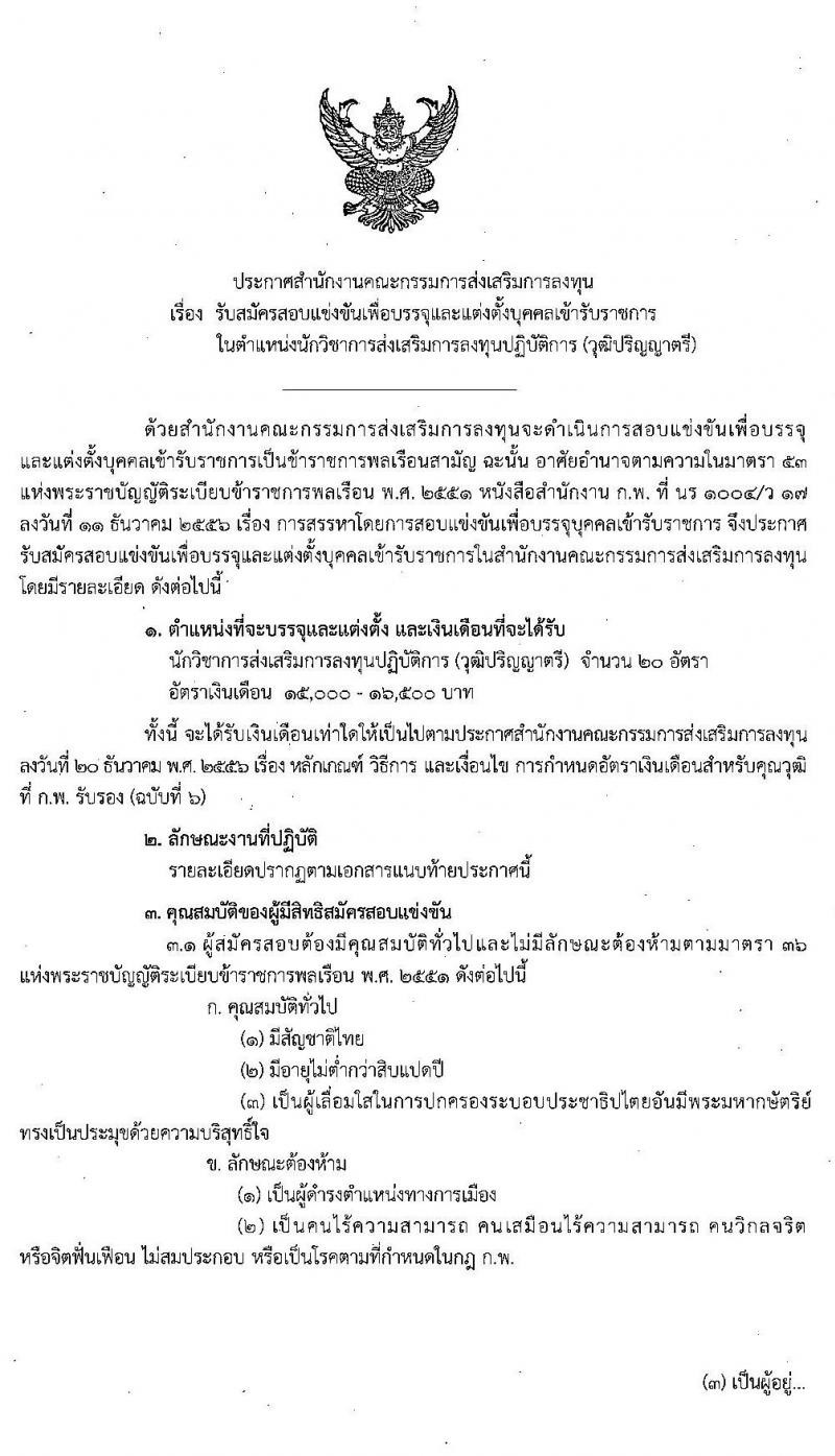 สำนักงานคณะกรรมการส่งเสริมการลุงทุน รับสมัครสอบเป็น ข้าราชการ ครั้งแรก 20 อัตรา
