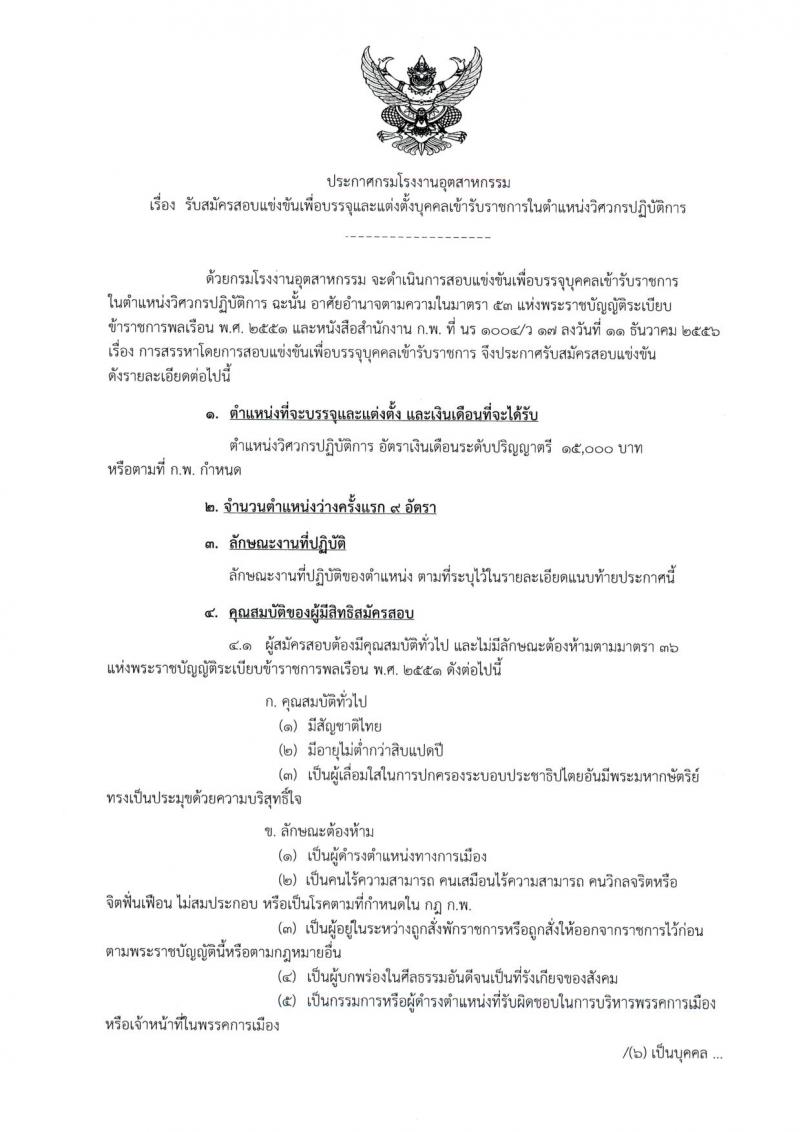 กรมโรงงานอุตสาหกรรม ประกาศรับสมัครสอบแข่งขันเพื่อบรรจุและแต่งตั้งบุคคลเข้ารับราชการในตำแหน่งวิศวกรปฏิบัติการ จำนวน 9 อัตรา (วุฒิ ป.ตรี) รับสมัครสอบตั้งแต่วันที่ 1-21 มี.ค. 2559