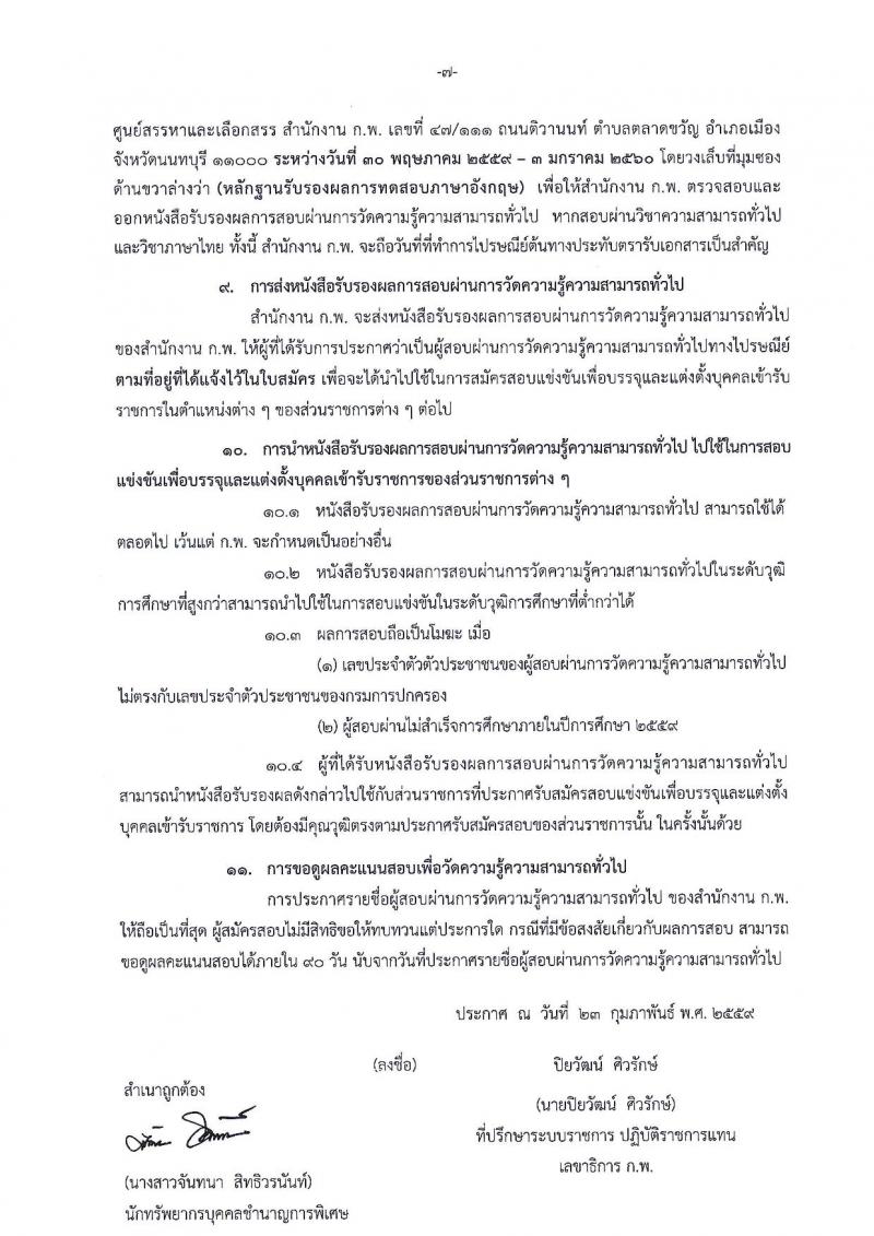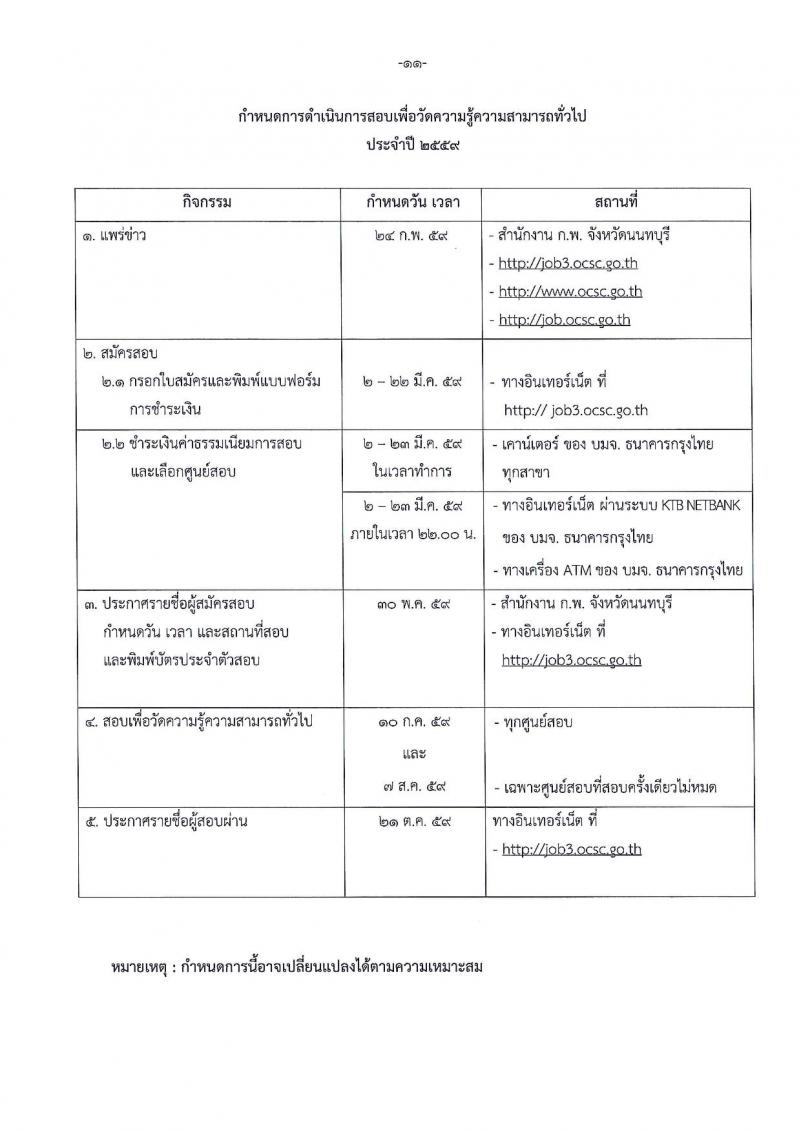 สำนักงาน ก.พ. ประกาศรับสมัครสอบเพื่อวัดความรู้ความสามารถทั่วไป ประจำปี 2559 (วุฒิ ปวช. ปวท. อนุปริญญา ปวส. ป.ตรี ป.โท สมัครทางอินเทอร์เน็ต ตั้งแต่วันที่ 2-22 มี.ค.2559