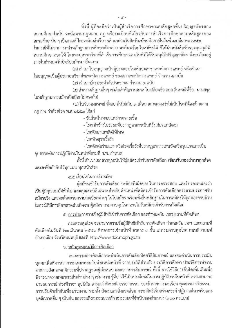 กรมควบคุมโรค ประกาศรับสมัครคัดเลือกเพื่อบรรจุและแต่งตั้งบุคคลเข้ารับราชการในตำแหน่งนักเทคนิคการแพทย์ปฏิบัติการ จำนวน 2 อัตรา (วุฒิ ป.ตรี) รับสมัครสอบตั้งแต่วันที่ 14-18 มี.ค. 2559