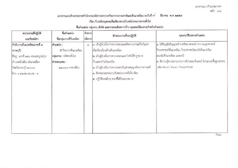 สำนักงานปลัดกระทรวงทรัพยากรธรรมชาติและสิ่งแวดล้อม ประกาศรับสมัครบุคคลเพื่อเลือกสรรเป็นพนักงานราชการทั่วไป จำนวน 4 อัตรา รับสมัครสอบตั้งแต่วันที่ 15-21 มี.ค. 2559