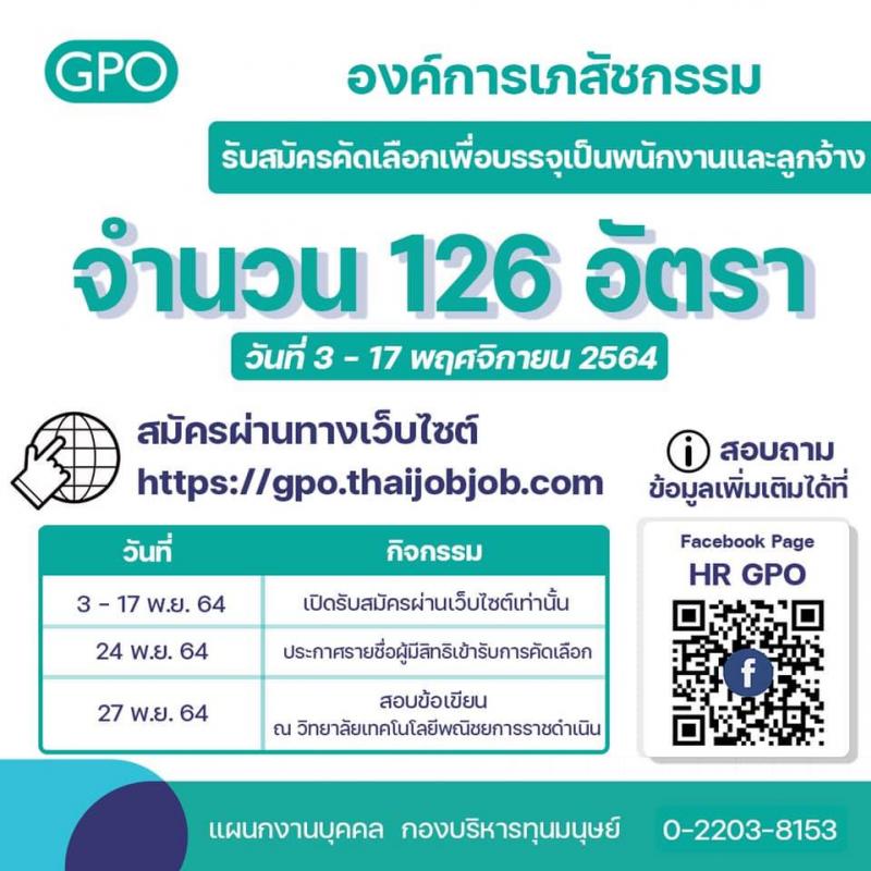 องค์การเภสัชกรรม รับสมัครบุคคลเพื่อบรรจุและแต่งตั้งเป็นพนักงาและลูกจ้าง จำนวน 126 อัตรา (วุฒิ ป.6 ปวช. ปวส. ป.ตรี ป.โท) รับสมัครตั้งแต่วันที่ 3-17 พ.ย. 2564