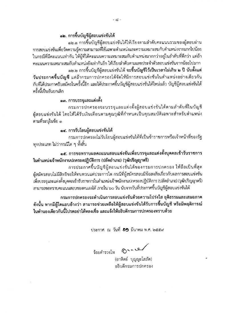 กรมการปกครอง ประกาศรับสมัครสอบแข่งขันเพื่อบรรจุและแต่งตั้งบุคคลเข้ารับราชการในตำแหน่งเจ้าพนักงานปกครองปฏิบัติการ (ปลัดอำเภอ)(วุฒิปริญญาตรี) จำนวน 100 อัตรา รับสมัครสอบทางอินเทอร์เน็ต ตั้งแต่วันที่ 23 มี.ค. - 20 เม.ย. 2559