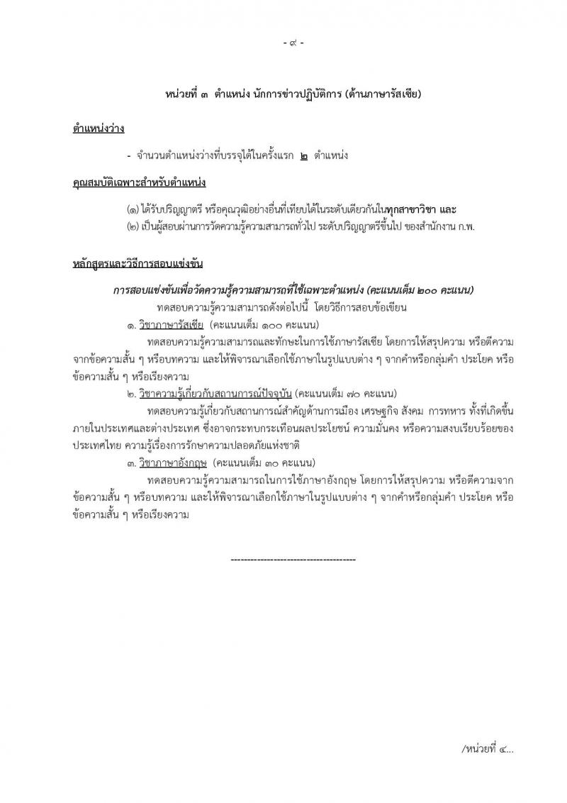 สำนักข่าวกรองแห่งชาติ ประกาศรับสมัครสอบแข่งขันเพื่อบรรจุและแต่งตั้งบุคคลเข้ารับราชการในตำแหน่งนักการข่าวปฏิบัติการ (วุฒิ ป ตรี) จำนวน 8 ตำแหน่ง 36 อัตรา รับสมัครสอบทางอินเทอร์เน็ต ตั้งแต่วันที่ 23 มี.ค. – 18 เม.ย. 2559