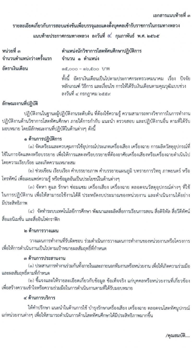 กรมทางหลวง รับสมัครสอบแข่งขันเพื่อบรรจุและแต่งตั้งบุคคลเข้ารับราชการในกรมทางหลวง จำนวน 3 ตำแหน่ง ครั้งแรก 6 อัตรา (วุฒิ ป.ตรี) รับสมัครสอบตั้งแต่วันที่ 22 ก.พ. – 14 มี.ค. 2565