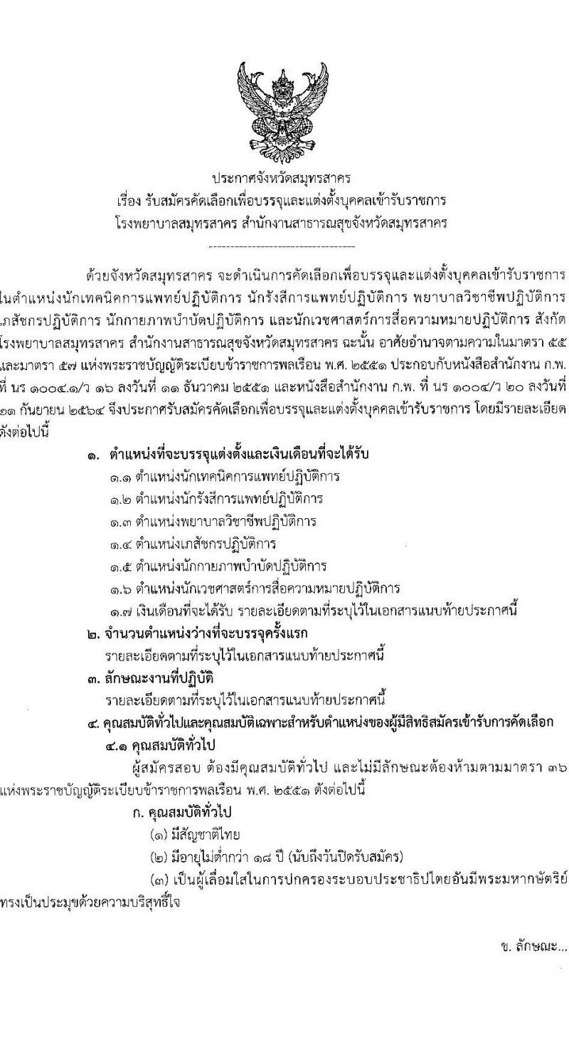 สาธารณสุขจังหวัดสมุทรสาคร เปิดสอบบรรจุเข้ารับราชการ 7 ตำแหน่ง ครั้งแรก 52 อัตรา