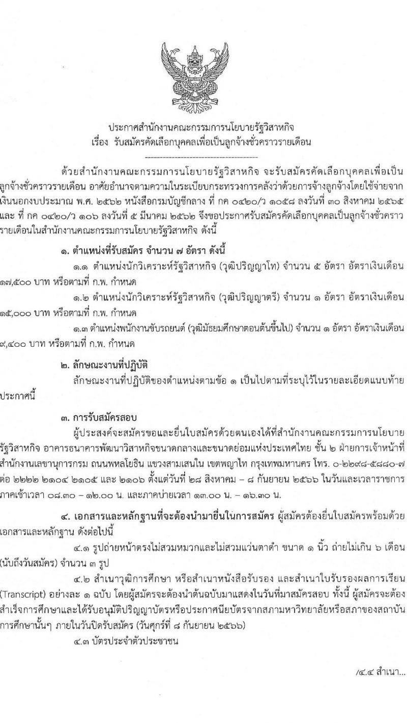 สำนักงานคณะกรรมการนโยบายรัฐวิสาหกิจ เปิดสอบลูกจ้างชั่วคราว 2 ตำแหน่ง 7 อัตรา