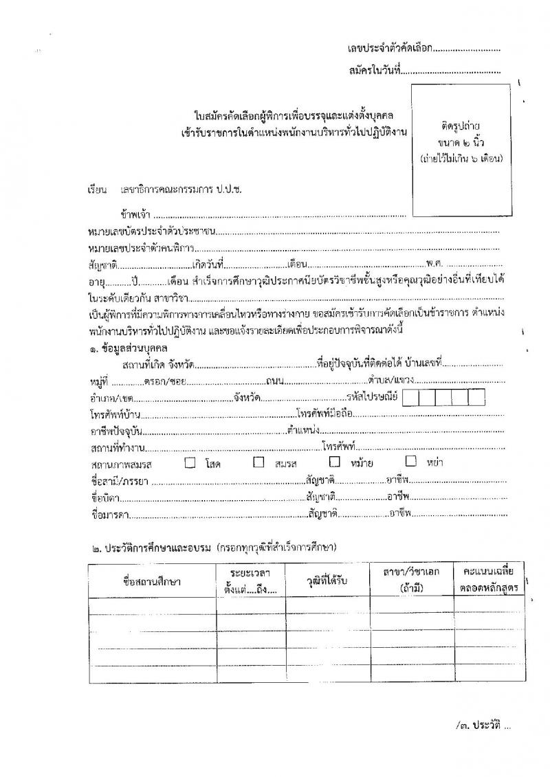 สำนักงาน ป.ป.ช. ประกาศรับสมัครคัดเลือกผู้พิการเพื่อบรรจุและแต่งตั้งบุคคลเข้ารับราชการในตำแหน่งพนักงานบริหารทั่วไปปฏิบัติงาน จำนวน 2 อัตรา (วุฒิ ปวส. หรือเทียบเท่า) ประกาศรับสมัครตั้งแต่วันที่ 6-17 มิ.ย. 2559