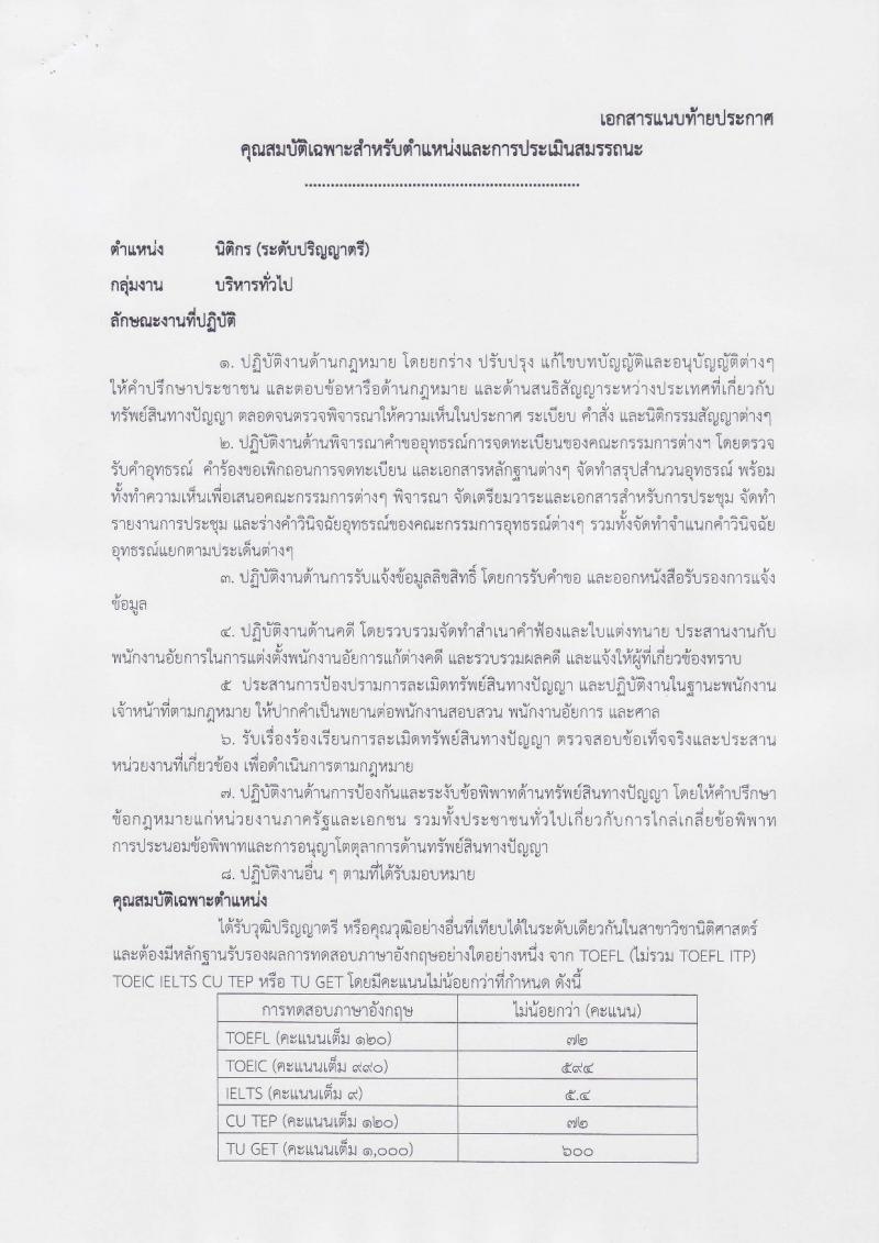 กรมทรัพย์สินทางปัญญา รับสมัครสอบเป็น พนักงานราชการ 9 อัตรา
