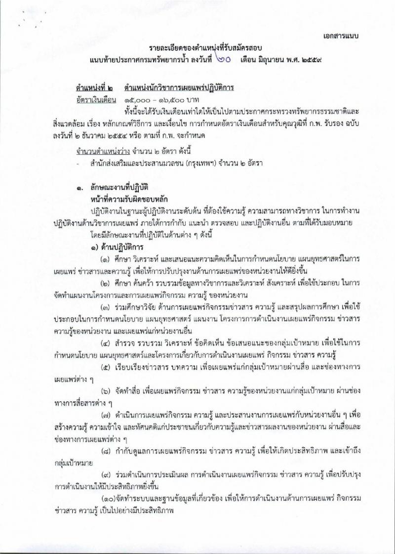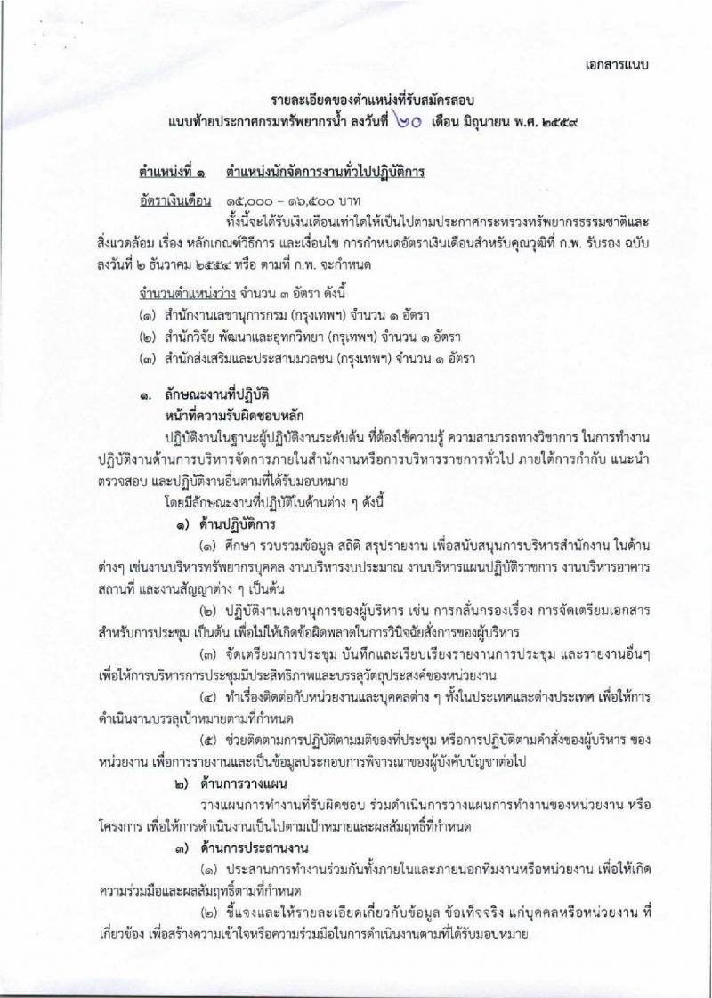 กรมทรัพยากรน้ำ ประกาศรับสมัครสอบแข่งขันเพื่อบรรจุและแต่งตั้งบุคคลเข้ารับราชการในตำแหน่งนักจัดการงานทั่วไปปฏิบัติการ และนักวิชาการเผยแพร่ปฏิบัติการ รวม 5 อัตรา (วุฒิ ป.ตรี) รับสมัครสอบทางอินเทอร์เน็ต ตั้งแต่วันที่ 28 มิ.ย. - 21 ก.ค. 2559